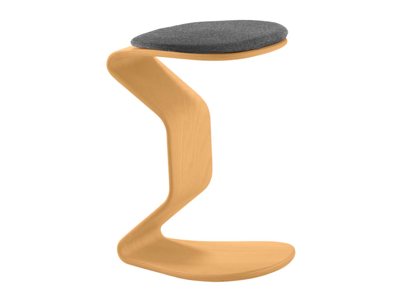 Der Bewegungshocker wird mit einem Oberflächenfurnier in Buche aus vorbildlicher Forstwirtschaft hergestellt. Die Holzteile werden ausschließlich mit Leim auf Wasserbasis verklebt.