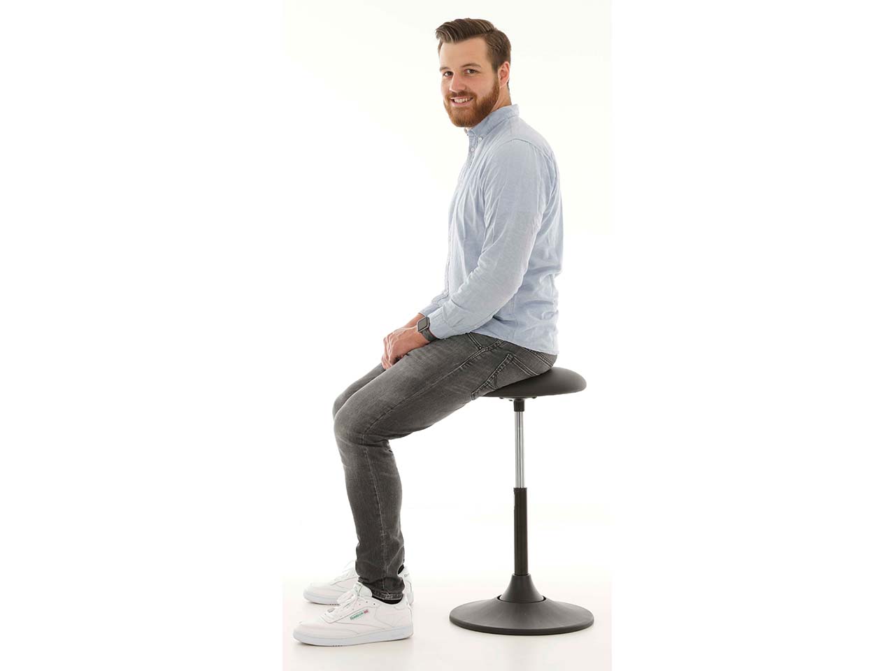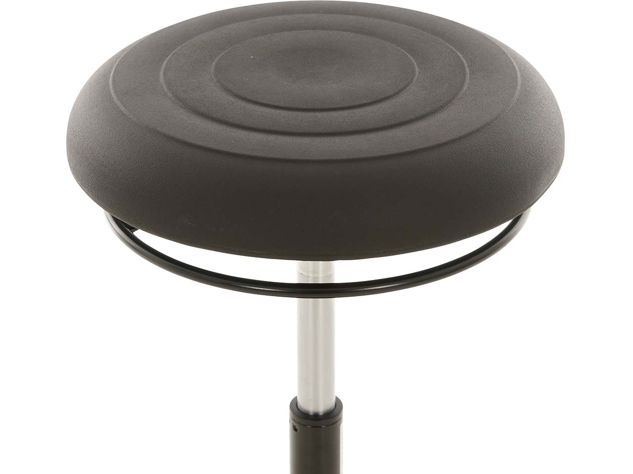 Schwingt in alle Richtungen und passt sich der Körperhaltung perfekt an: Der Bewegungshocker ist ideal als Stehhilfe! Durch den multibeweglichen Korpus wird der Körper bei stehenden Tätigkeiten entlastet. Die Konzentrationsfähigkeit leidet so weniger und man ist nicht so schnell erschöpft. Der Hocker ist schwenkbar und in der Höhe verstellbar. So lässt sich an verschiedene Menschen anpassen. Die rutschfesten Pads sorgen für einen sicheren Stand. Mit einem Bezug aus Polyurethan.