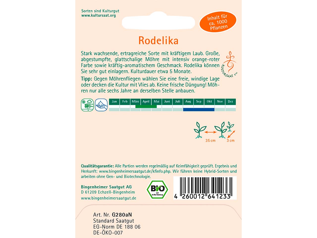 bingenheimer saatgut Bio-Samen Möhre "Rodelika"