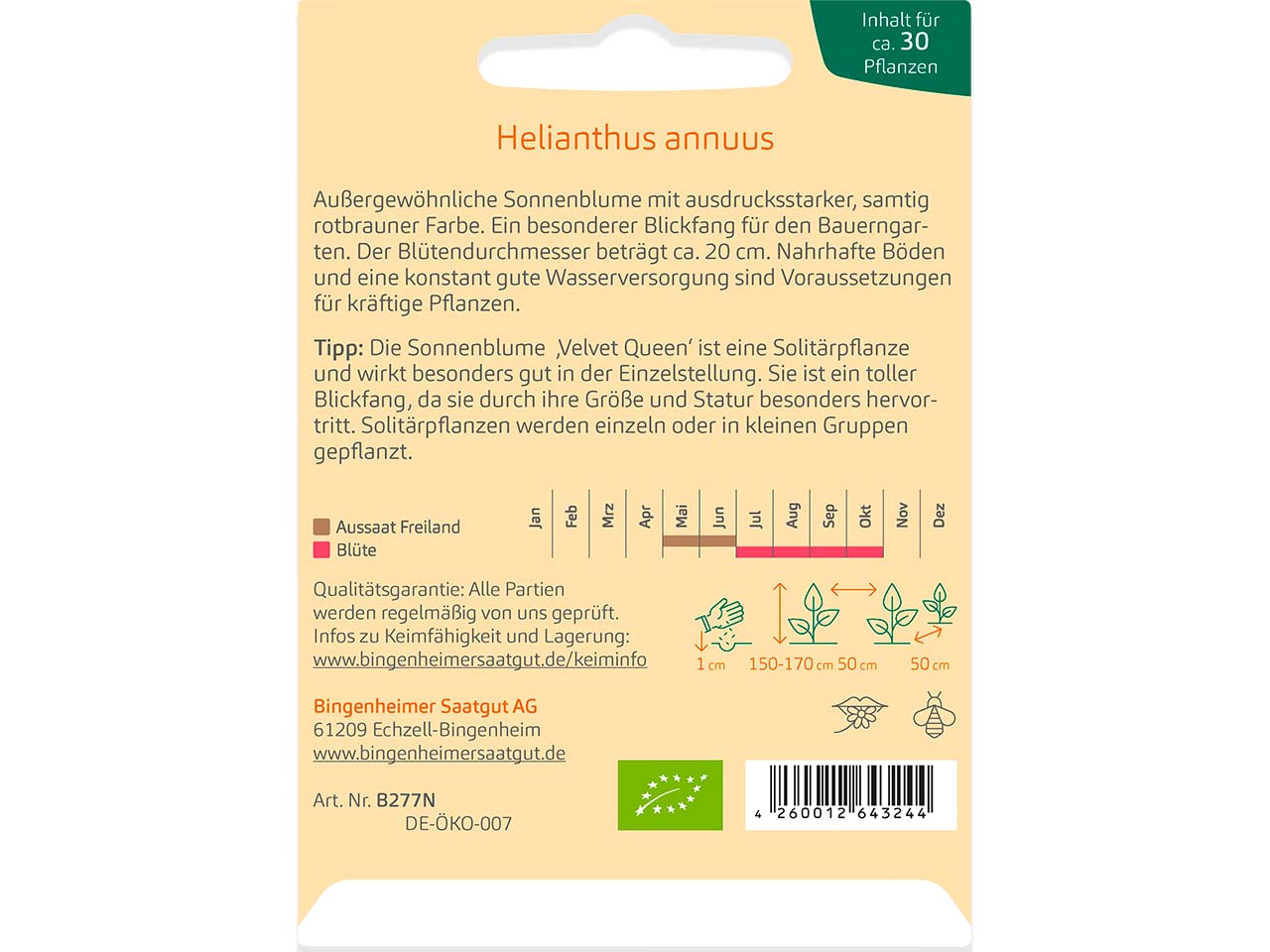 bingenheimer saatgut Bio-Samen Sonnenblume "Velvet Queen", Bienenfreundlich