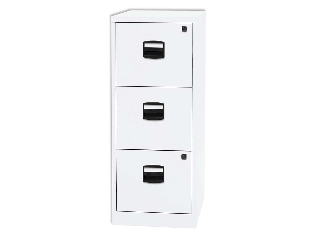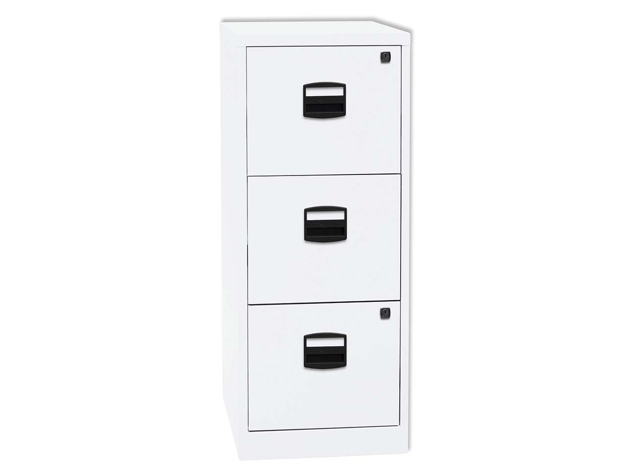 Der kompakte Bisley Hängeregistraturschrank "PFA" verfügt über drei Schubladen mit Hängeregistratur. Der pulverbeschichtete Stahlschrank hat Kunststoffgriffe, große Etikettenhalter und ist abschließbar. Die Schubladen des Beistellschranks sind mit kugelgelagerten Laufschienen ausgestattet und bis 75 % ausziehbar.