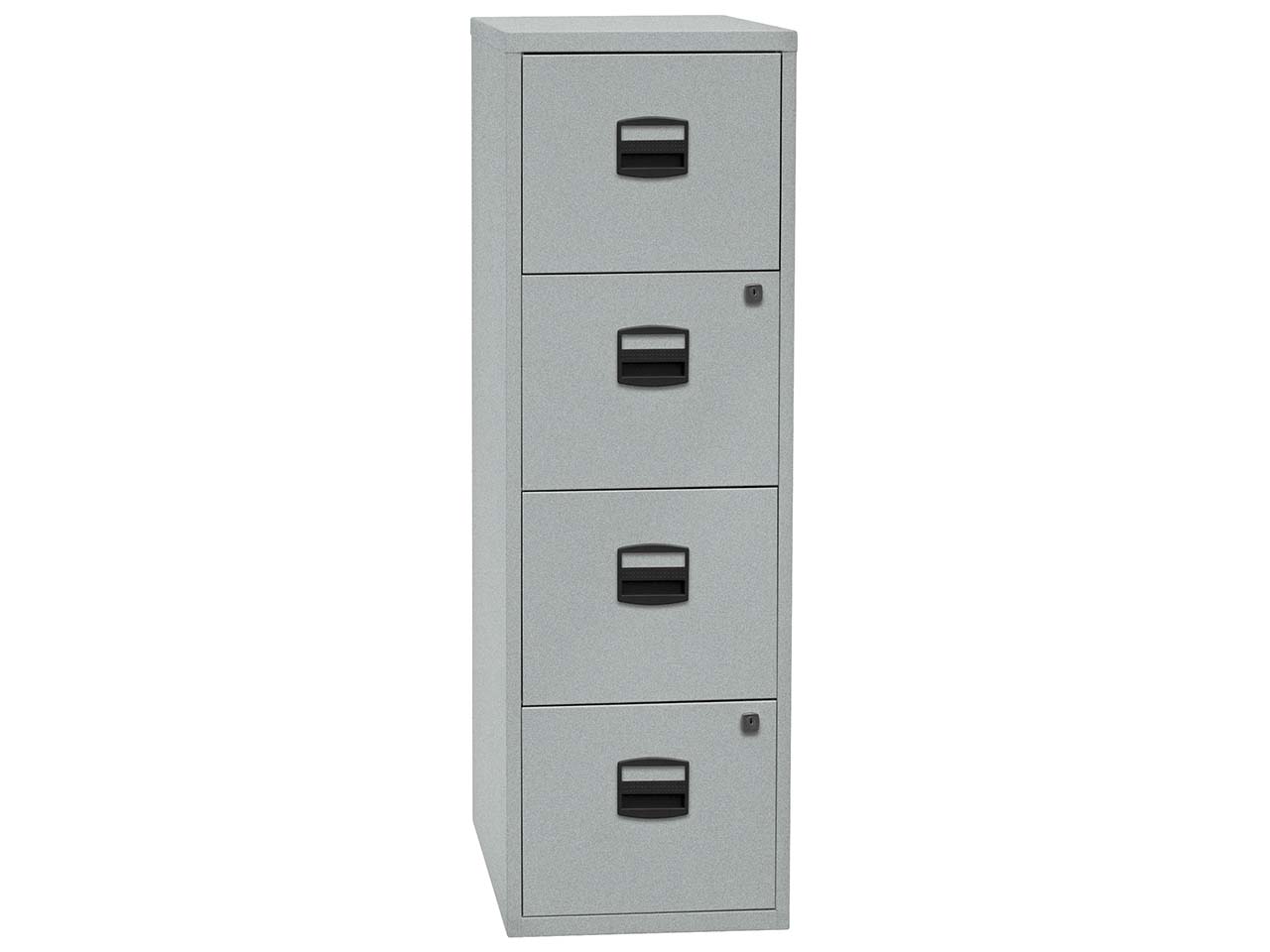Der kompakte Bisley Hängeregistraturschrank "PFA" verfügt über vier Schubladen mit Hängeregistratur. Der pulverbeschichtete Stahlschrank hat Kunststoffgriffe, große Etikettenhalter und ist abschließbar. Die Schubladen des Beistellschranks sind mit kugelgelagerten Laufschienen ausgestattet und bis 75 % ausziehbar.