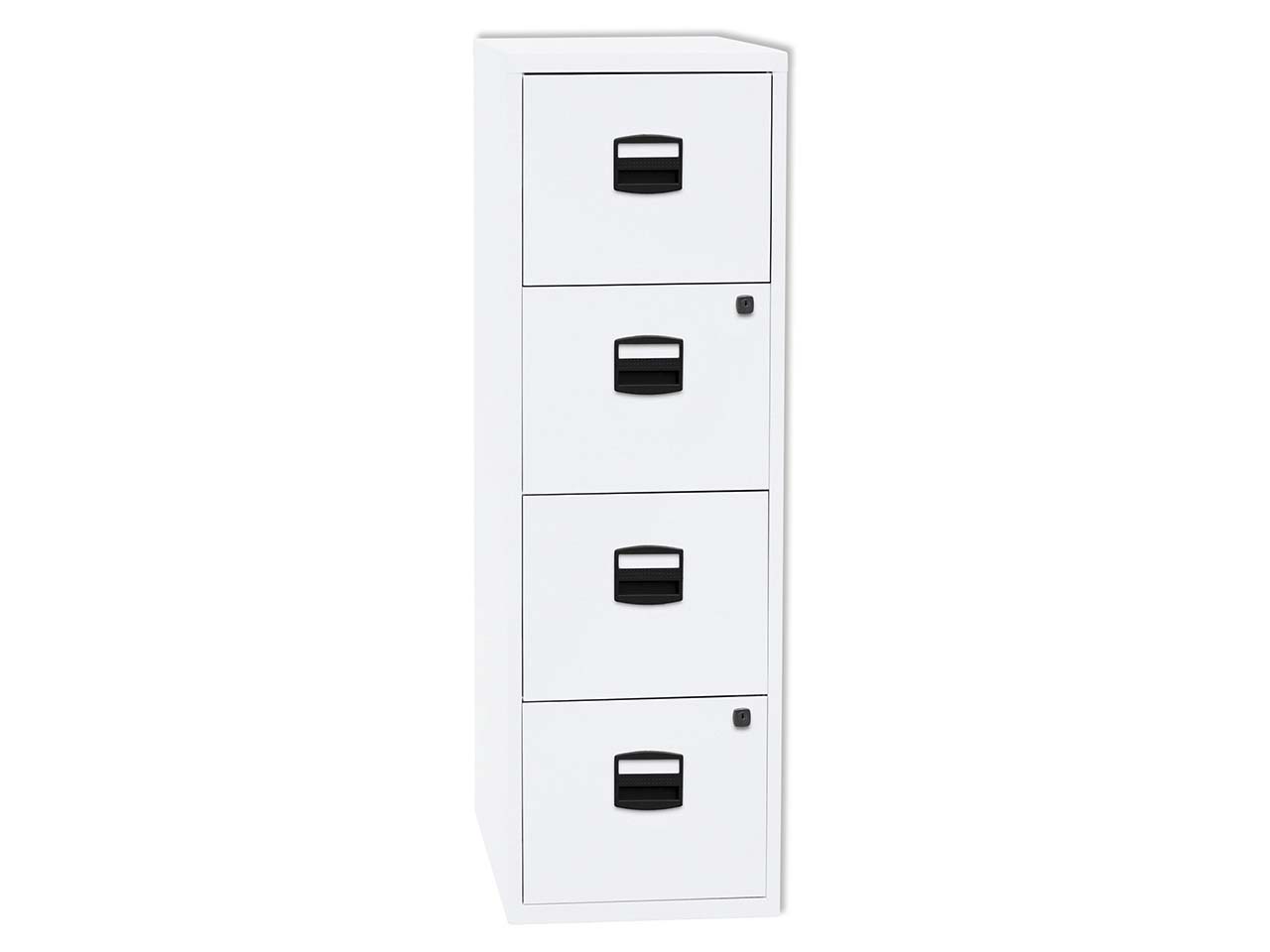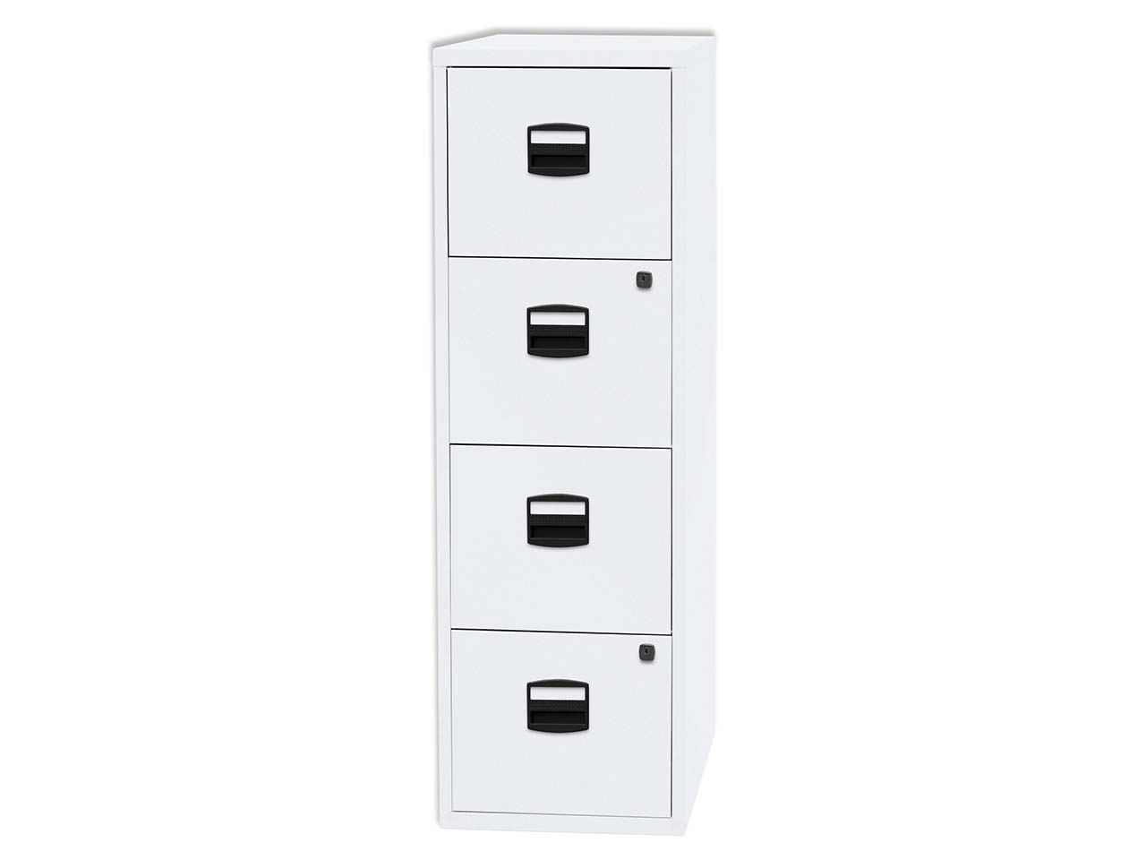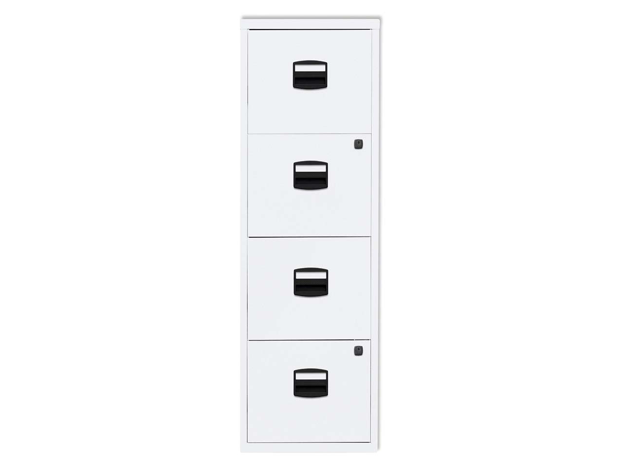 Der kompakte Bisley Hängeregistraturschrank "PFA" verfügt über vier Schubladen mit Hängeregistratur. Der pulverbeschichtete Stahlschrank hat Kunststoffgriffe, große Etikettenhalter und ist abschließbar. Die Schubladen des Beistellschranks sind mit kugelgelagerten Laufschienen ausgestattet und bis 75 % ausziehbar.
