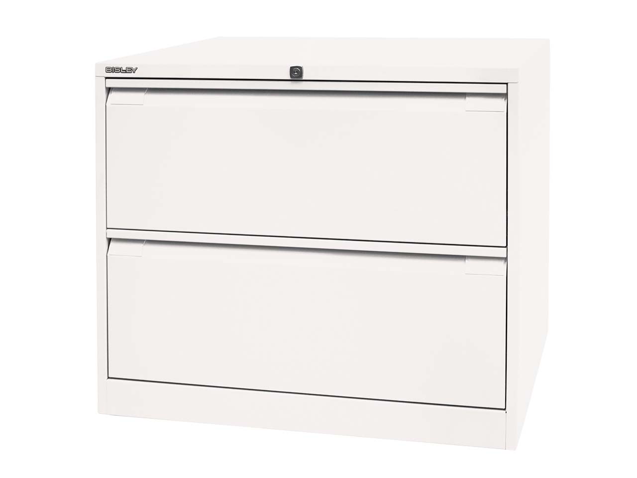 Der BISLEY Hängeregistraturschrank aus stabilem, langlebigem Stahl bietet in den 2 doppelbahnigen Schubladen viel Platz für Mappen im Format DIN A4. Die Schubladen laufen auf den kugelgelagerten Schienen leise. Vollauszug und Doppelauszugssperre für ein optimiertes Arbeiten. Mit Griffleisten und Etikettenfenster. B 80 x T 62,2 x H 71,1 cm. Farbe verkehrsweiß.