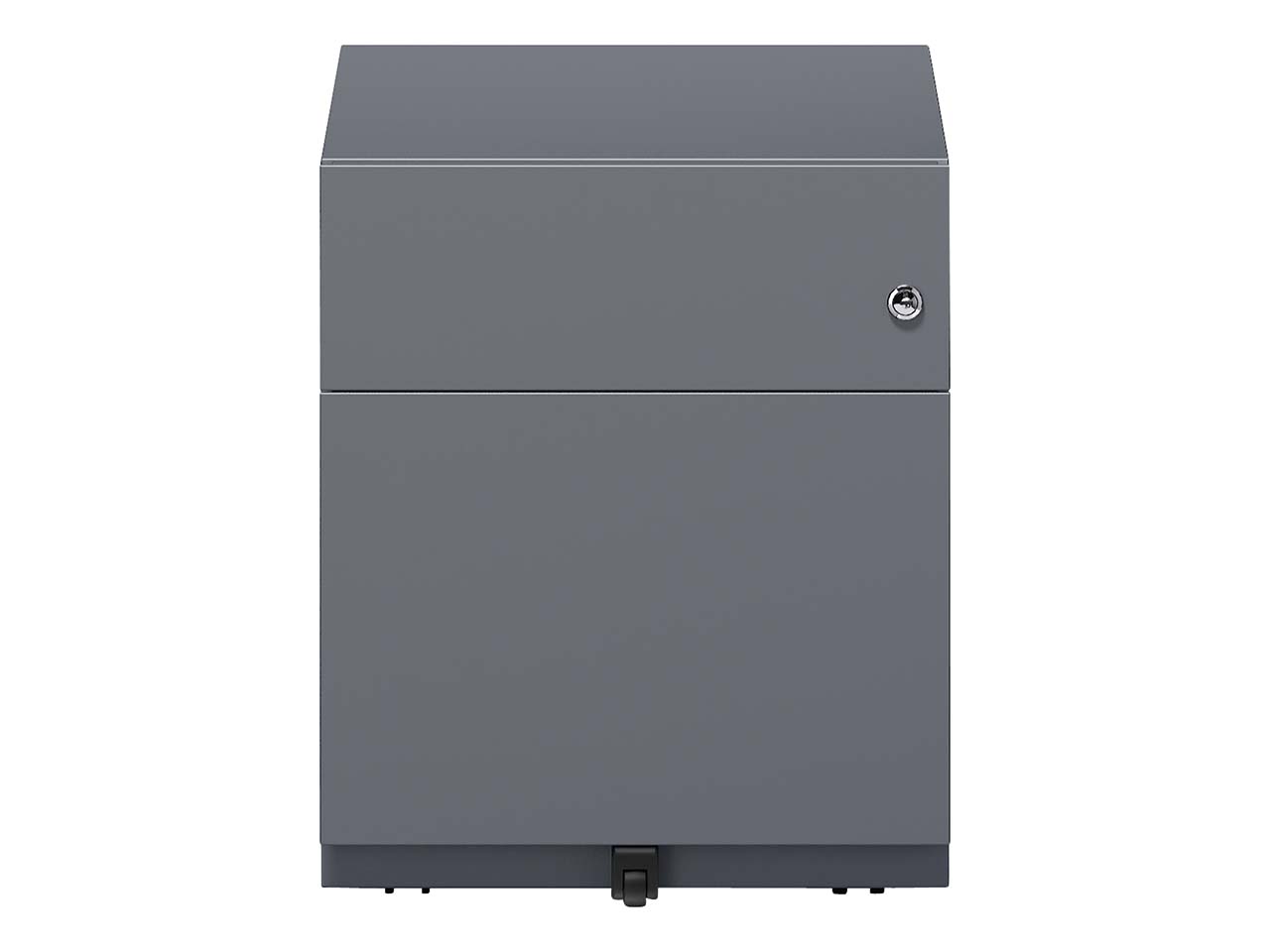 Der BISLEY Rollencontainer "Note" ist geradlinig designt und bietet eine Universal- und Hängeregistraturschublade, die sich jeweils zu 80 % ausziehen lassen. 4 unsichtbare Lenkrollen sorgen dafür, dass der Rollencontainer mobil ist. Eine 5. Rolle dient der Kippsicherung. In der oberen Schublade befindet sich das Zentralschloss zum Abschließen. Für Format DIN A4. B 42 x T 56,5 x H 49,5 cm.