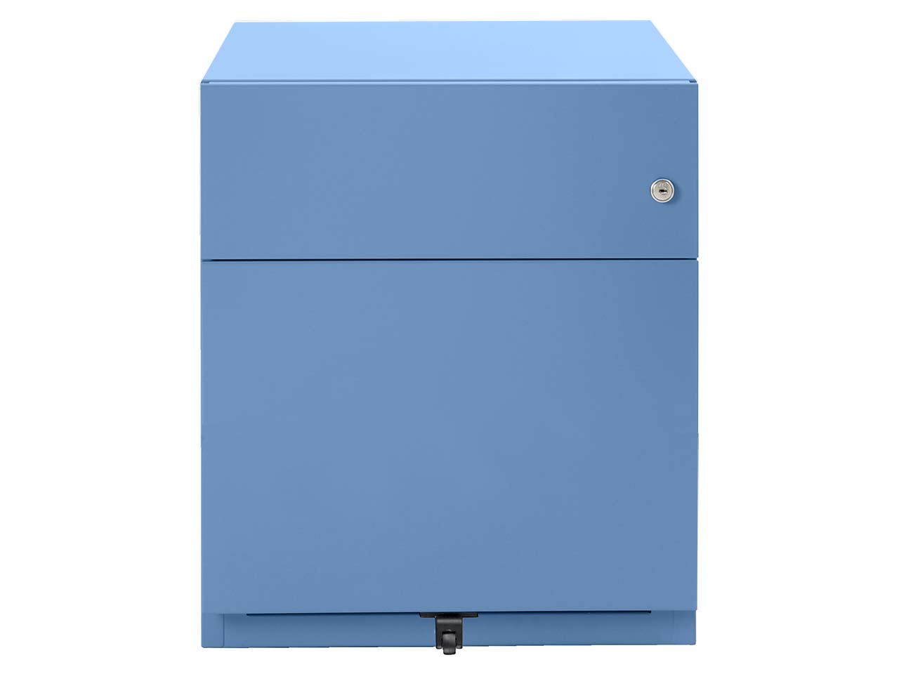 Der BISLEY Rollencontainer "Note" ist geradlinig designt und bietet eine Universal- und Hängeregistraturschublade, die sich jeweils zu 80 % ausziehen lassen. 4 unsichtbare Lenkrollen sorgen dafür, dass der Rollencontainer mobil ist. Eine 5. Rolle dient der Kippsicherung. In der oberen Schublade befindet sich das Zentralschloss zum Abschließen. Für Format DIN A4. B 42 x T 56,5 x H 49,5 cm.