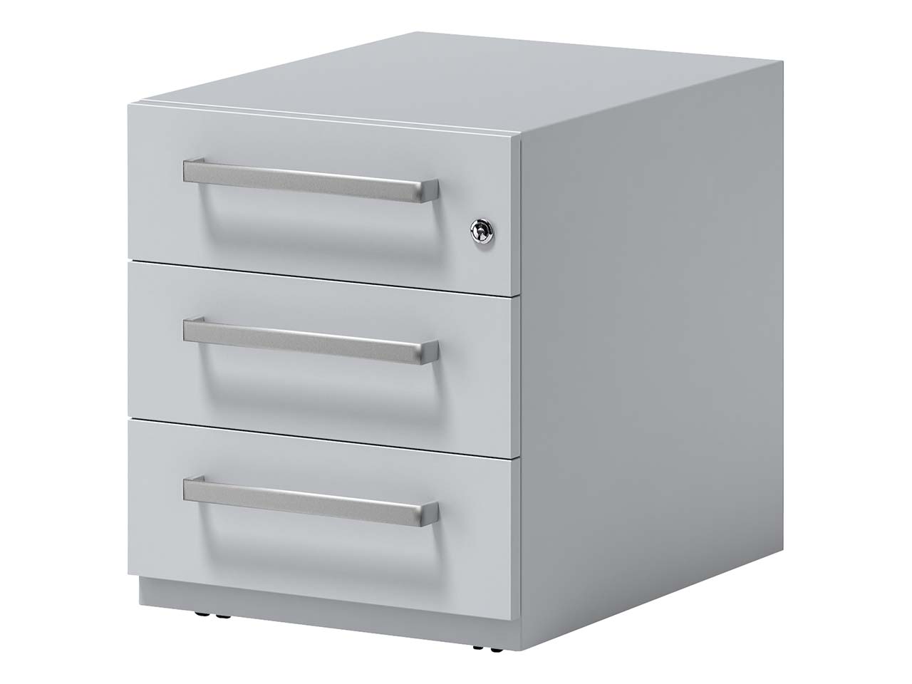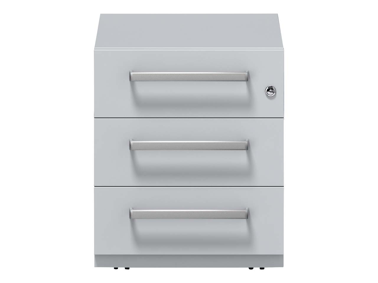 Der geradlinig designte BISLEY Rollencontainer "Note" ist sehr funktional: 3 Schubladen mit aluminium-matten Griffen lassen bis zu 80 % ausziehen und bieten Platz für Unterlagen, Dokumente, etc. bis Format DIN A4. Durch die 4 unsichtbaren Lenkrollen ist der Rollencontainer auch mobil. Eine 5. Rolle dient als Kippsicherung. Das Zentralschloss ist in der obersten Schublade zu finden. B 42 x T 56,5 x H 49,5 cm.