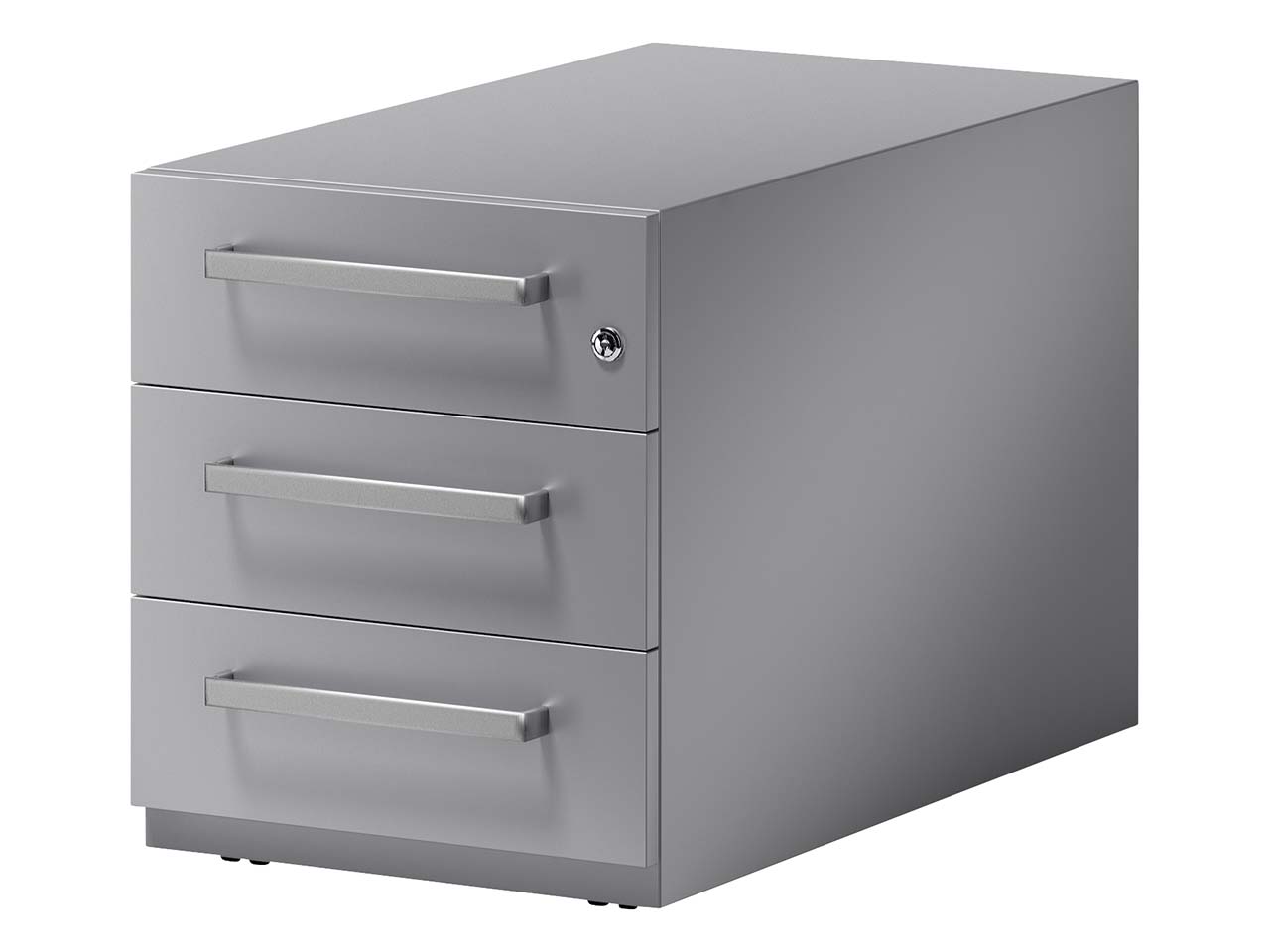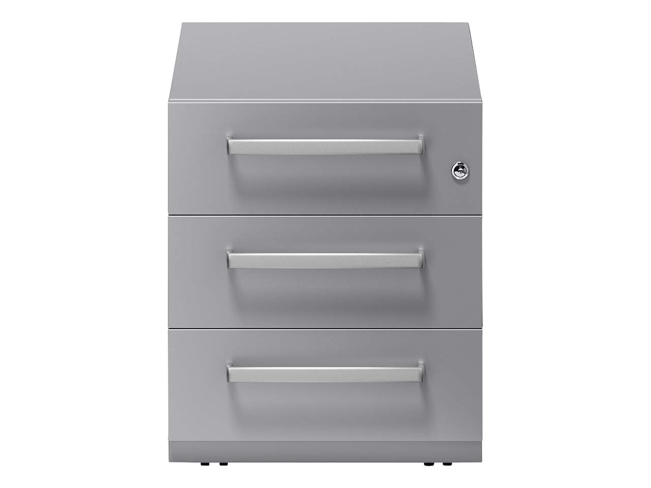 Geradliniges Design und 3 Schubladen für ausreichend Stauraum zeichnen den BISLEY Rollencontainer "Note" aus. Über die aluminium-matten Griffe lassen sich die Schubladen bis zu 80 % ausziehen und bieten Platz bis Format DIN A4. Dank der 4 unsichtbaren Lenkrollen ist der Rollencontainer mobil. Eine 5. Rolle dient zur Kippsicherung. In der oberen Schublade befindet sich ein Zentralschloss. B 42 x T 77,5 x H 49,5 cm.