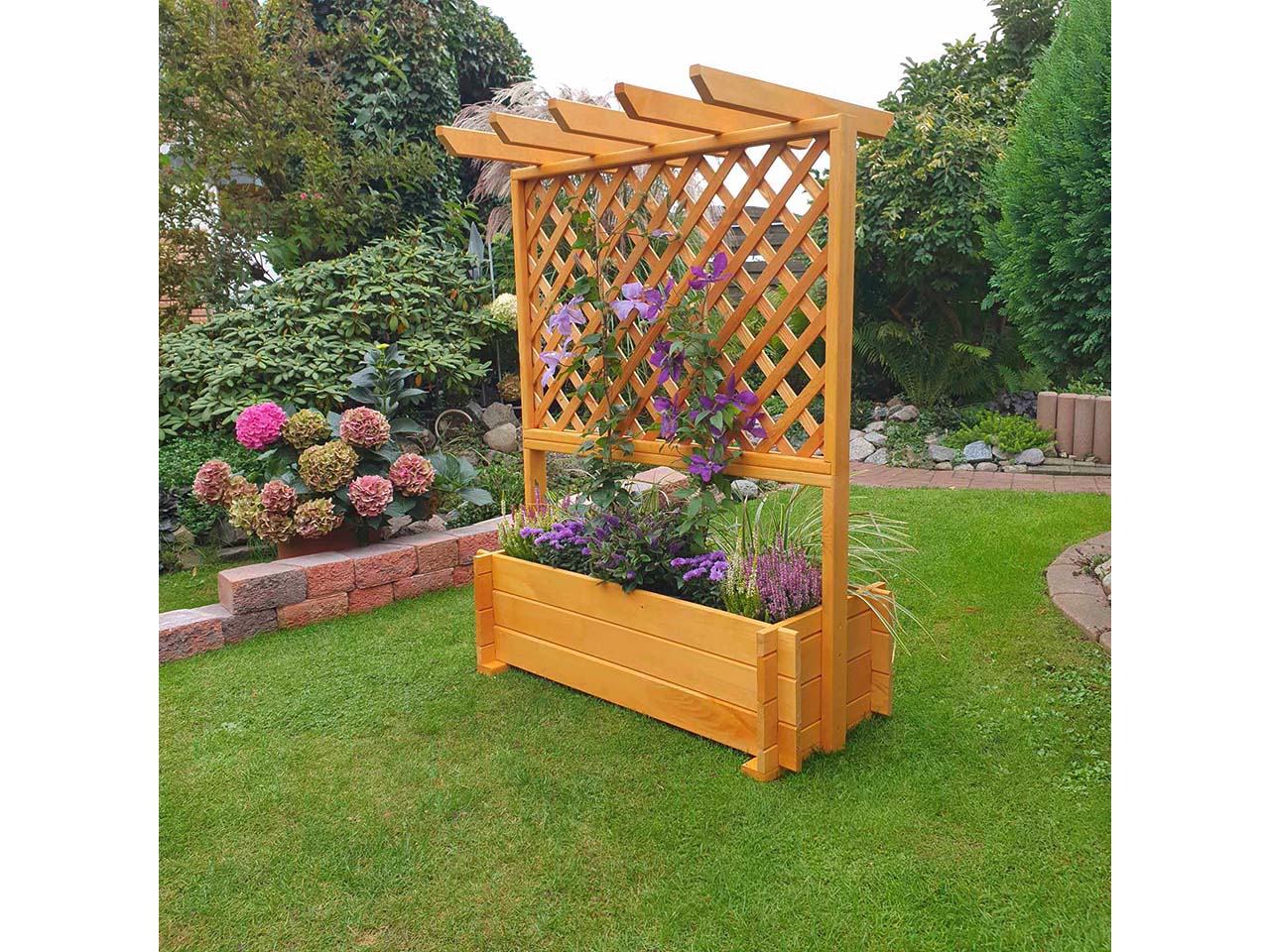 Blumenkasten mit Rankgitter und Pergola
