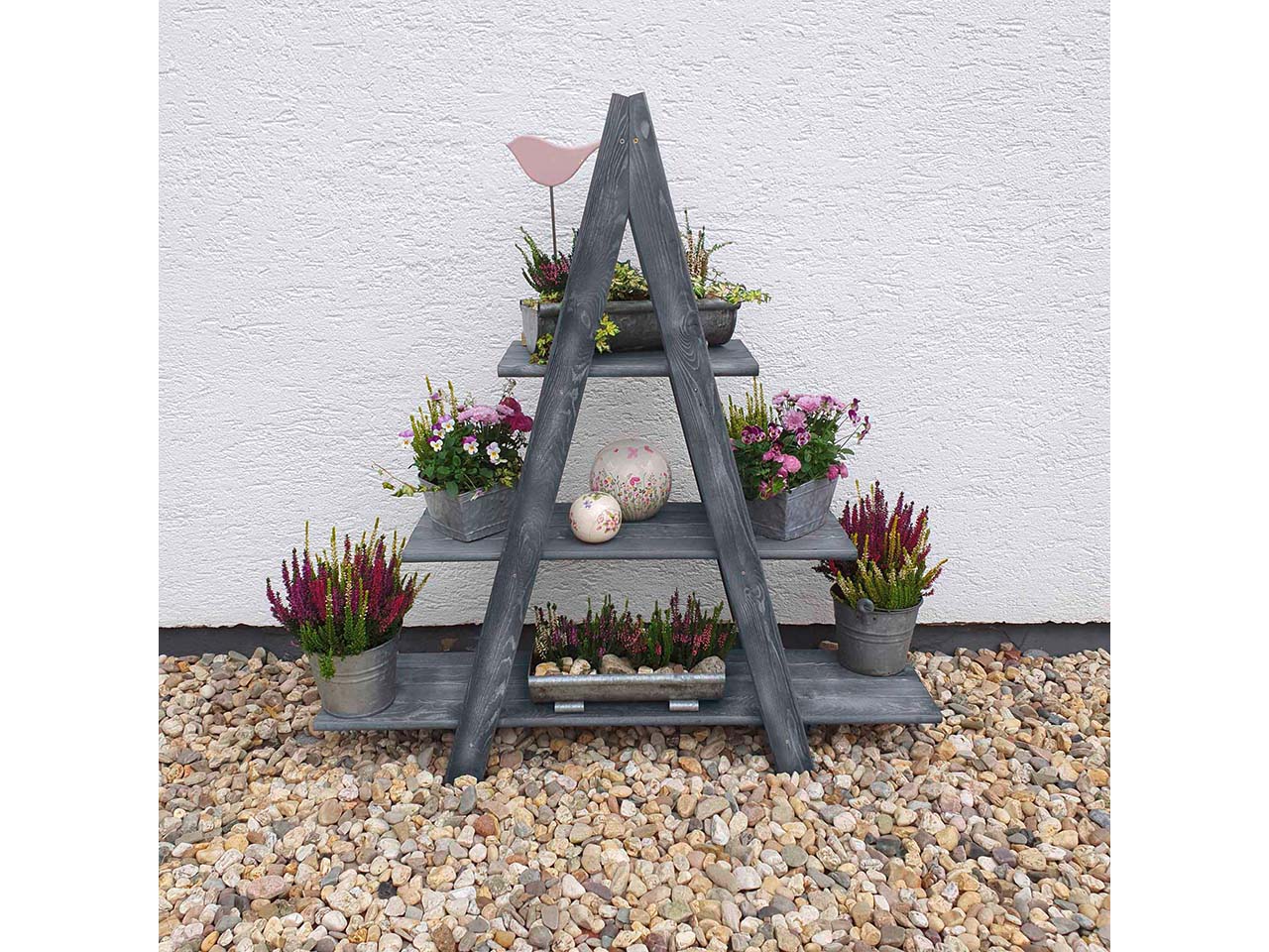 Blumen, Pflanzen und Dekoration perfekt in Szene setzen! Diese Blumenleiter aus massivem, FSC-zertifiziertem Kiefernholz macht es möglich. Das geradlinige Design mit 3 praktischen Etagen eignet sich für Blumentöpfe und vieles mehr. Die Dekoleiter hat eine stabile, robuste Qualität und ist wetterfest imprägniert, sodass sie das ganze Jahr über draußen stehen kann. Durch die vormontierten Elemente ist der Aufbau der Blumenleiter ganz einfach. B 137 x T 31 x H 120 cm.