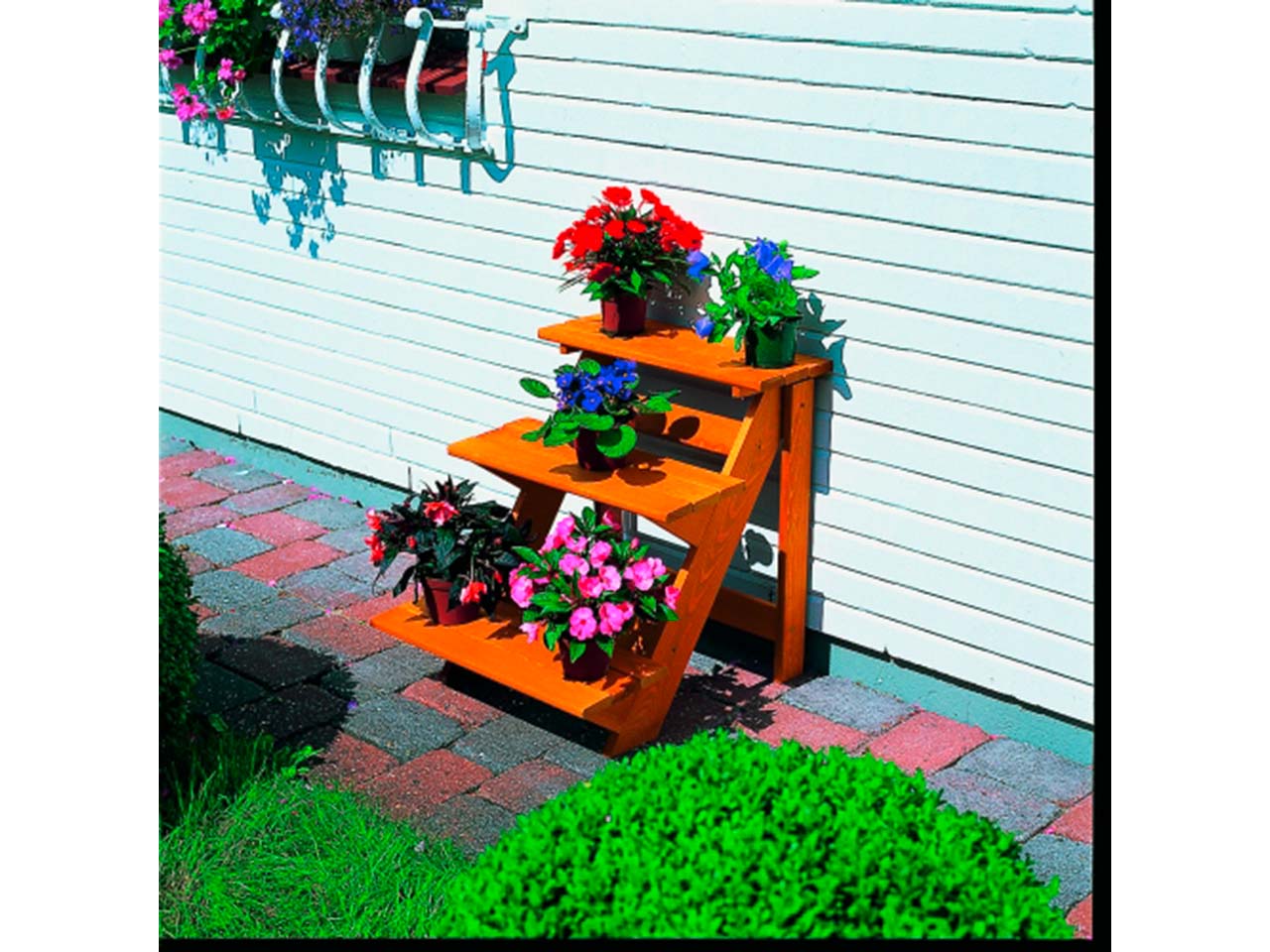Jetzt lassen sich Blumentöpfe so richtig in Szene setzen: Die kleine Blumentreppe macht es möglich! Gefertigt ist sie aus massivem, FSC-zertifiziertem Kiefernholz, das wetterfest imprägniert ist. Durch die geringe Stellfläche eignet sich die Blumentreppe nicht nur für den Garten, sondern auch für kleinere Terrassen und Balkone. Wo sie auch aufgestellt wird, sie ist immer eine Augenweide, die alle Blicke auf sich zieht! B 50 x T 60 x H 56 cm.