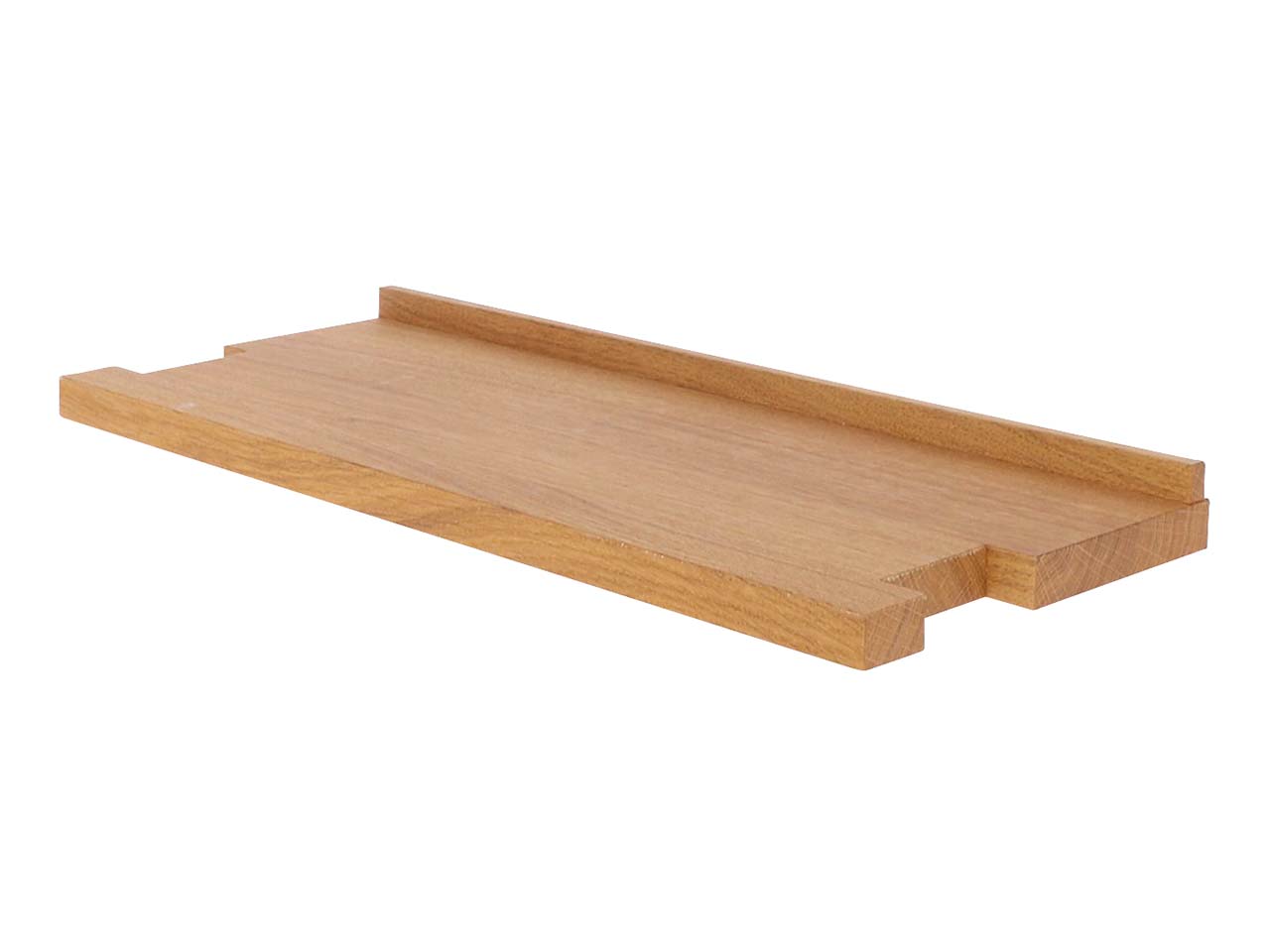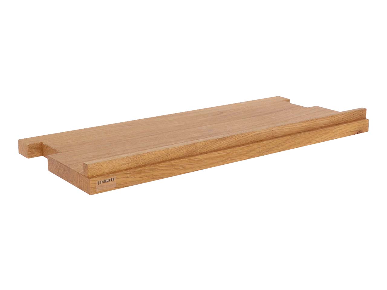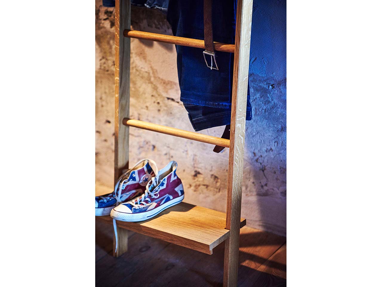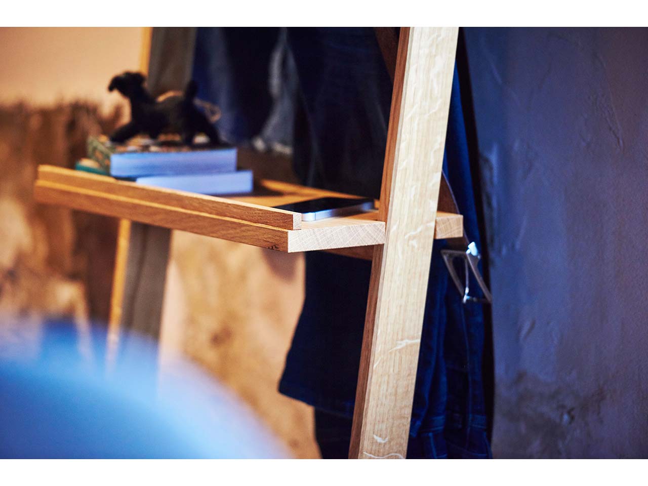 Mehr Ablagefläche schaffen sah noch nie so toll aus: Der Boden für den Handtuchhalter "hop" individualisiert die Leiter. Die Ablage lässt sich beidseitig anbringen, sodass sie entweder eine Rutschkante hat oder nicht. Wenn die Kante nach unten zeigt eignet sich das Zubehör z.B. ideal für das Abstellen von Schuhen. Es bieten sich zahlreiche Möglichkeiten, den Boden zu verwenden, etwa für Bücher, Dekoration, Accessoires und vieles mehr. Die Ablage kann an jeder Sprosse eingehängt werden, sodass die Leiter bei Bedarf auch mit 6 Böden versehen werden kann! Wie auch der Handtuchhalter ist das Zubehör aus massiver, geölter Eiche gefertigt. B 46 cm.