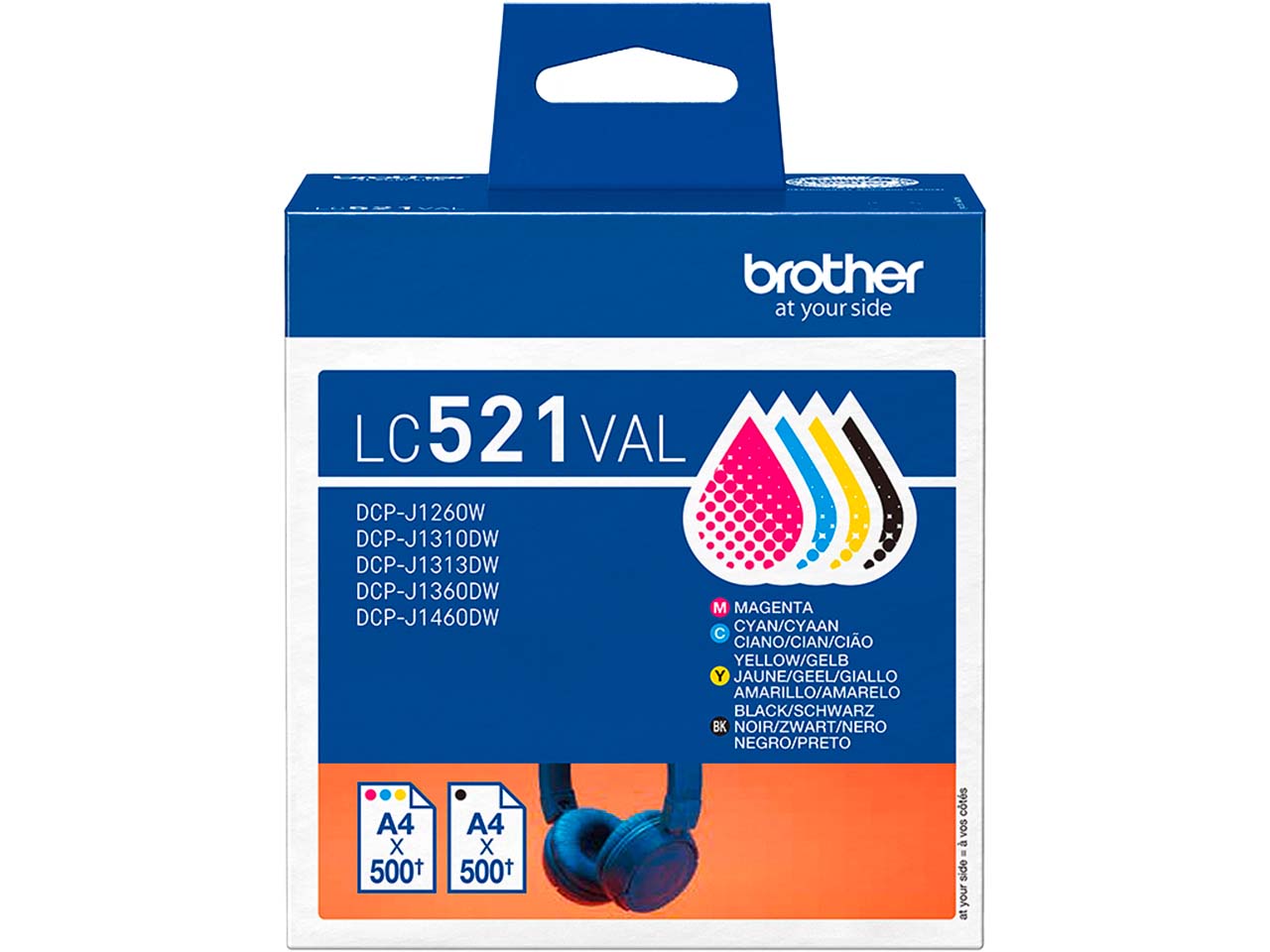 Brother 4er-Set Tintenpatrone LC-521BK/C/M/Y schwarz, cyan, magenta, gelb