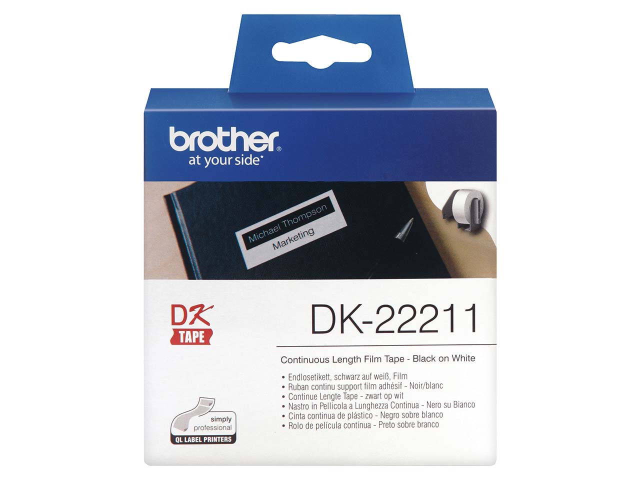 Weiße Endlosetiketten in reißfester, spritzwassergeschützter Filmqualität. Die Etiketten "DK-22211" sind kompatibel mit Brother "QL"-Geräten und lassen sich damit beschriften. Die Endlosetiketten kleben permanent und eignen sich für viele Anwendungsbereiche. B 29 mm x L 15,24 m.