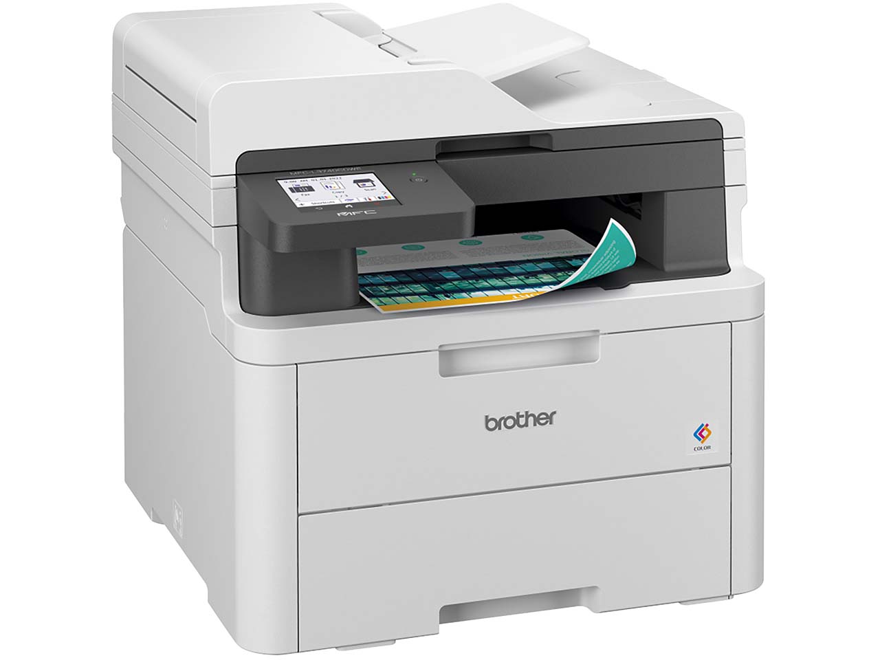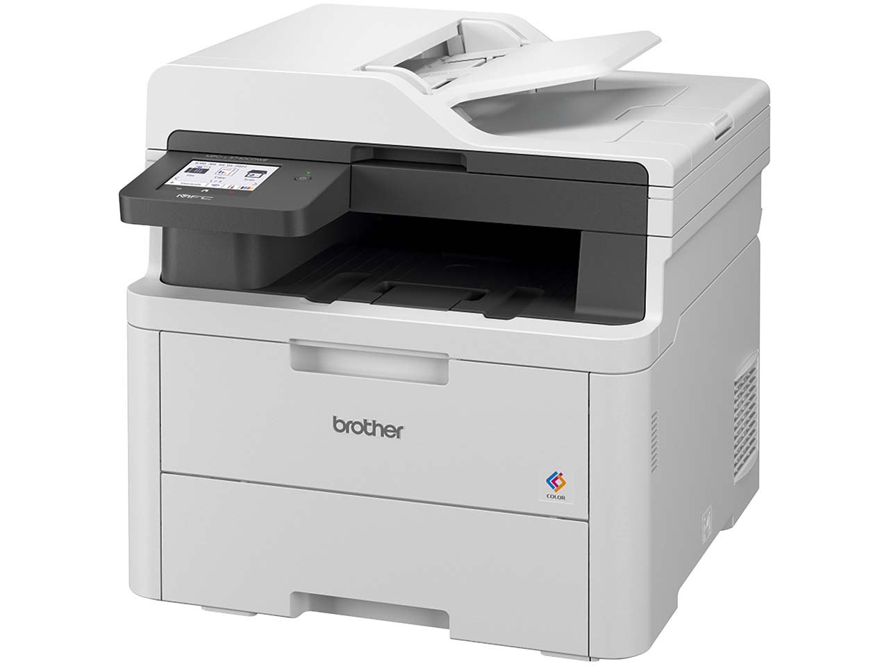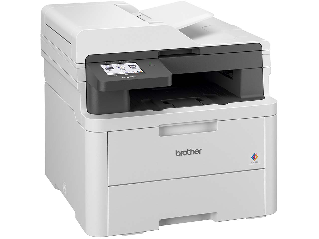 Der kompakte 4-in-1 Farblaserdrucker von Brother bietet umfassende Funktionalität mit WLAN, LAN, einem automatischen Dokumenteneinzug (ADF) und Duplexdruck. Er lässt sich schnell einrichten und steigert die Produktivität im Homeoffice und Büro. Mit einer Druckgeschwindigkeit von 18 Seiten/Min. und einer Scangeschwindigkeit von 21 Seiten/Min. arbeitet das Gerät effizient und zügig. Ein großes 8,8 cm Touchscreen-Farbdisplay erleichtert die Bedienung. Die Papierkassette fasst 250 Blatt und der automatische Vorlageneinzug kann 50 Blatt verarbeiten. Der Drucker verfügt über 512 MB Arbeitsspeicher, was eine reibungslose Verarbeitung auch größerer Druckaufträge ermöglicht. Trotz seiner leistungsstarken Funktionen arbeitet der Drucker geräuscharm, ohne Kompromisse bei der Druckqualität einzugehen. B 410 x T 444 x H 401 mm.