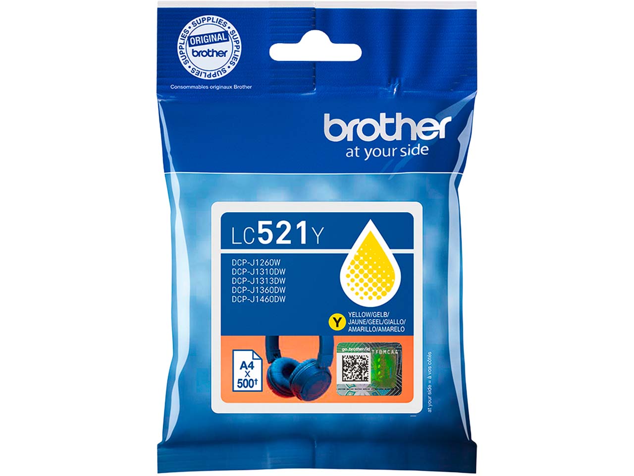 Die originale Brother Tintenpatrone LC-521Y erzielt auf verschiedenen Druckermodellen brillante Ergebnisse. Bei 5 % Deckung können bis zu 500 Seiten gedruckt werden.