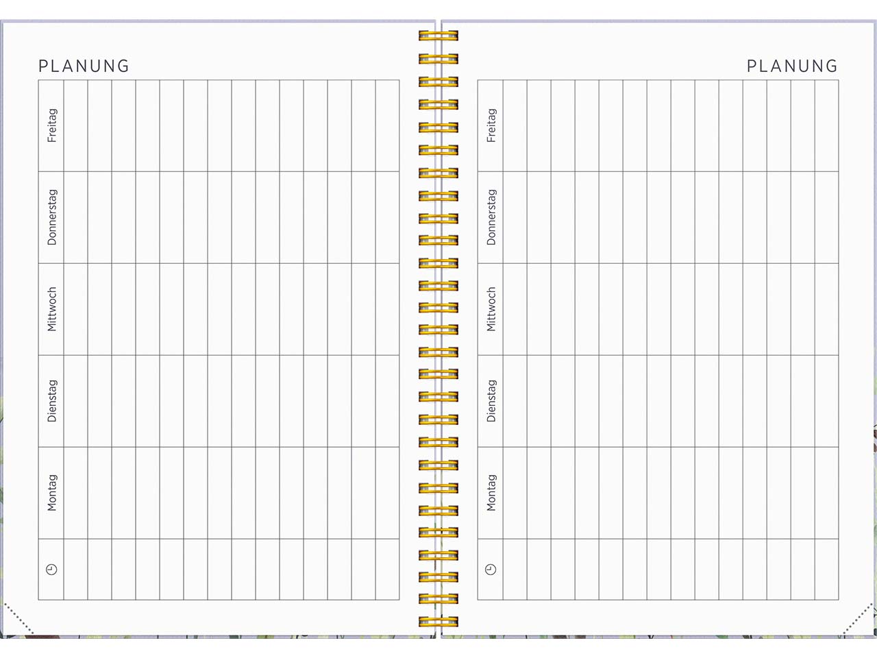 - Mit Jahresübersichten, To-do-Listen und Seiten für Notizen