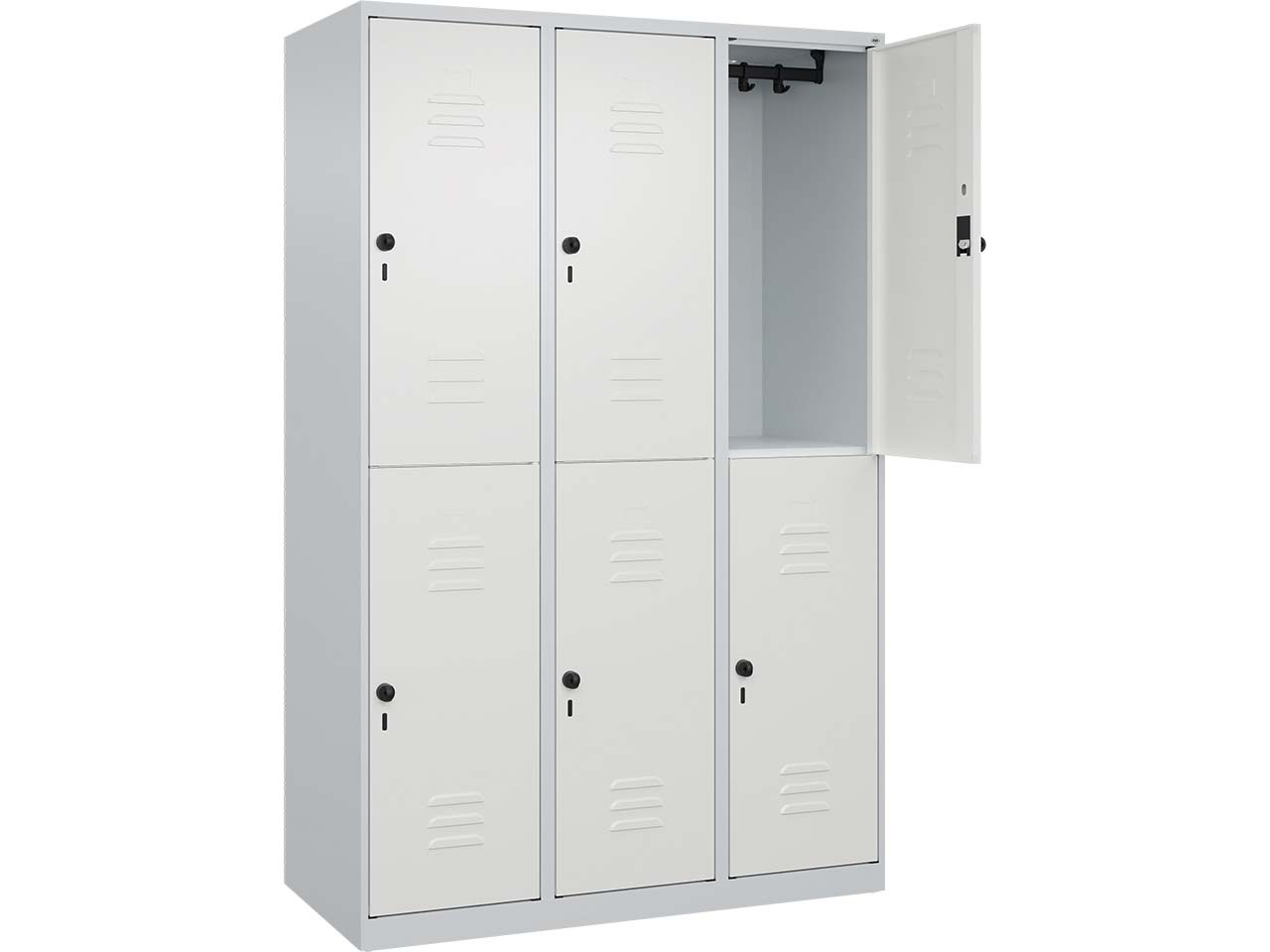 Doppelstöckiger Spind mit 120 cm Breite und 6 Fächern