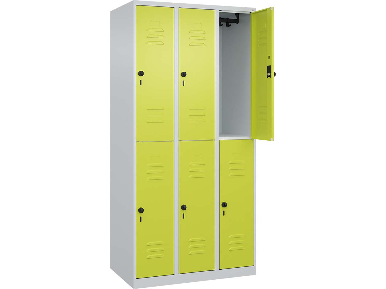 - Doppelstöckiger Spind mit 90 cm Breite und 6 Fächern