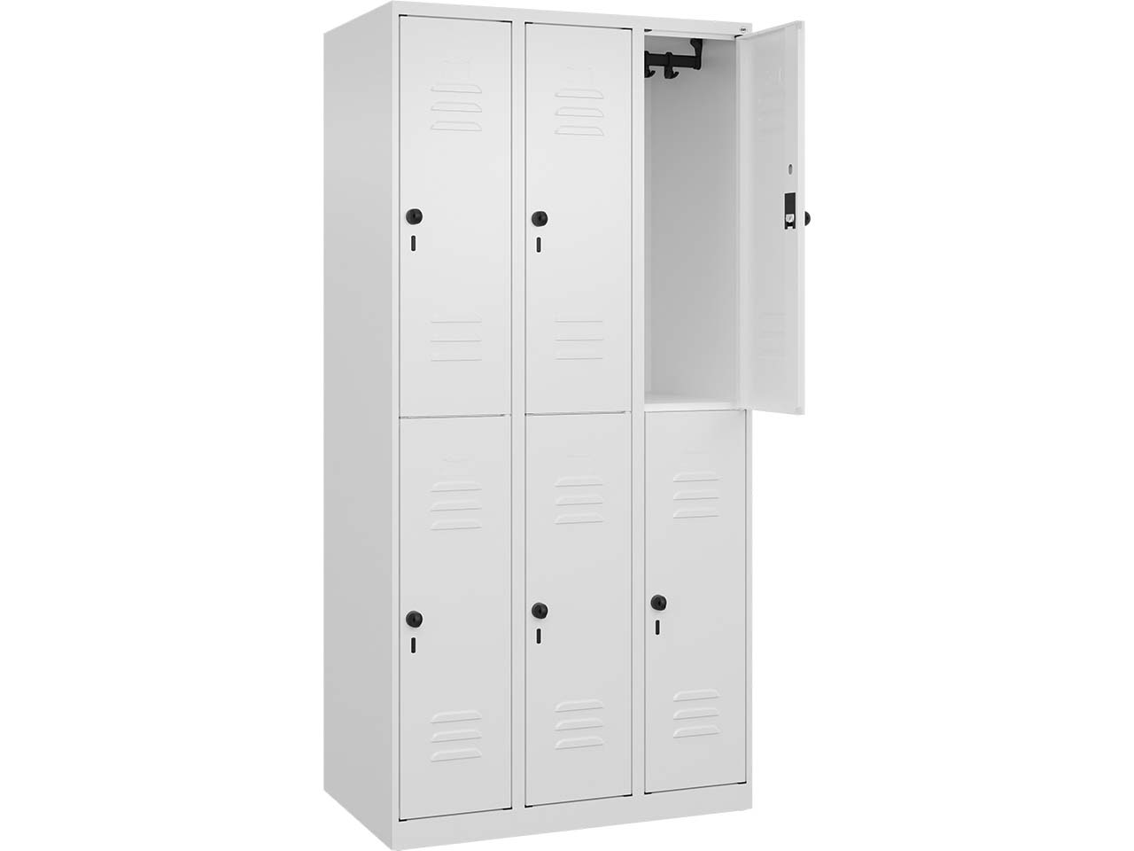 - Doppelstöckiger Spind mit 90 cm Breite und 6 Fächern