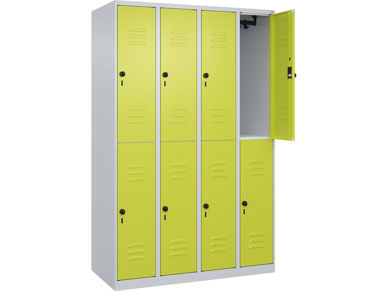 - Doppelstöckiger Spind mit 120 cm Breite und 4 Abteilen