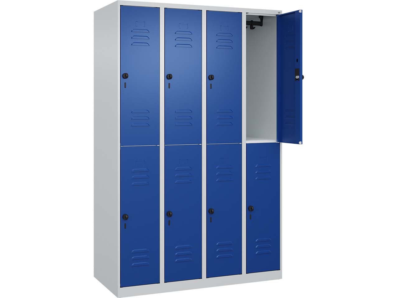- Doppelstöckiger Spind mit 120 cm Breite und 4 Abteilen