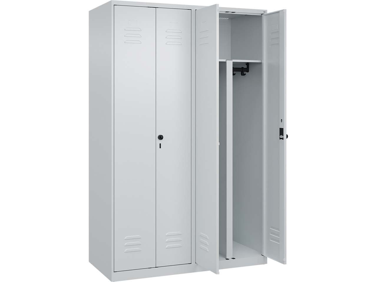 - Klassischer Doppelspind zur separaten Aufbewahrung von Privat- und Berufskleidung