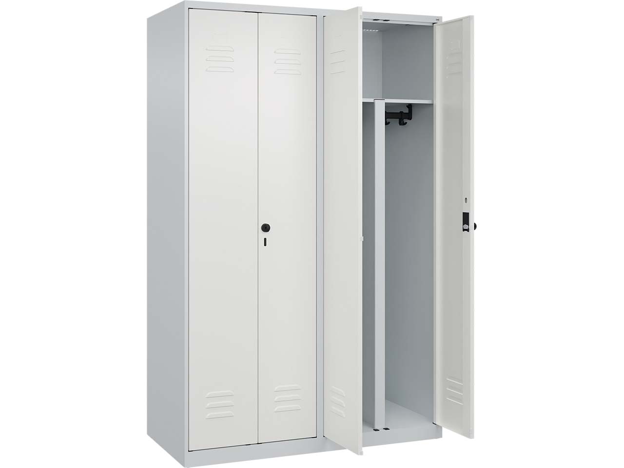 - Klassischer Doppelspind zur separaten Aufbewahrung von Privat- und Berufskleidung