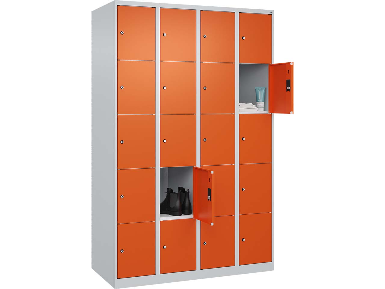 - Schließfachschrank mit 4 Abteilen zum Wegschließen persönlicher Gegenstände