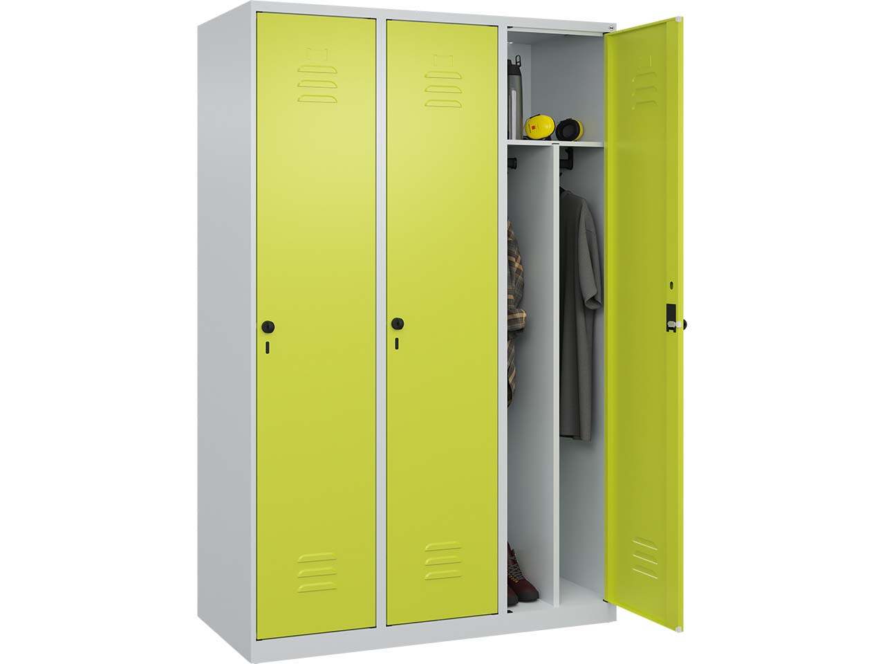 Kompakter Spind zur separaten Aufbewahrung von Privat- und Berufskleidung