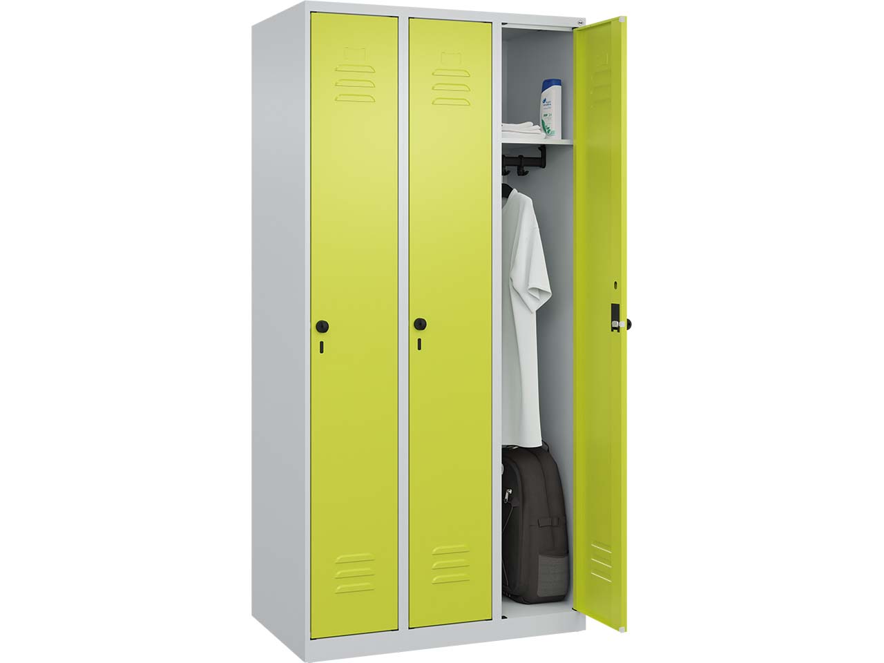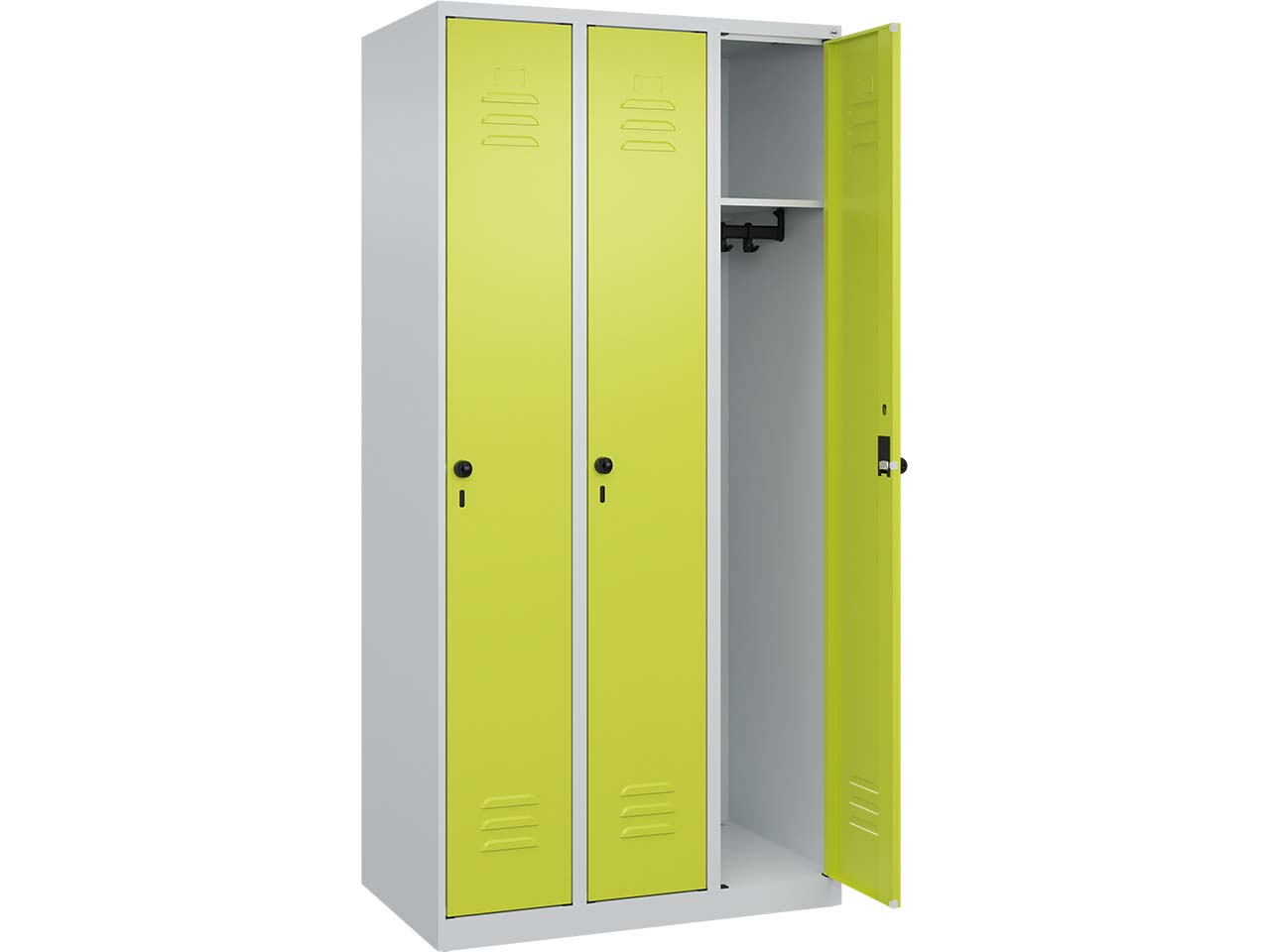 - Klassischer Spind aus Stahl mit 90 cm Breite und 3 Abteilen