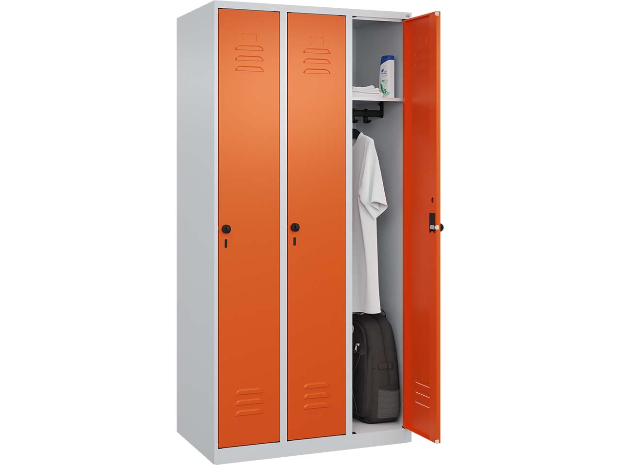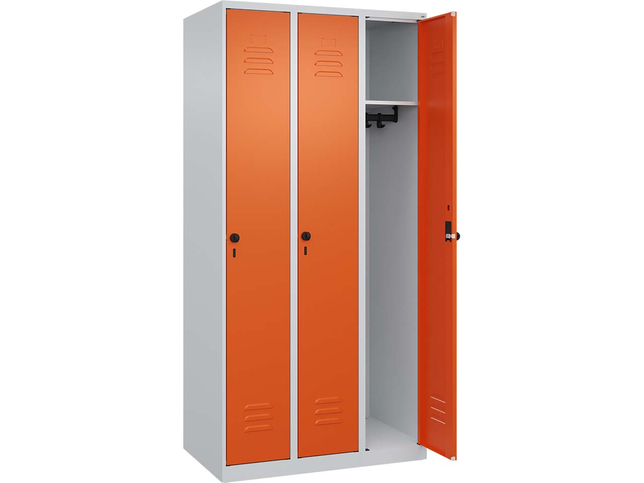 - Klassischer Spind aus Stahl mit 90 cm Breite und 3 Abteilen