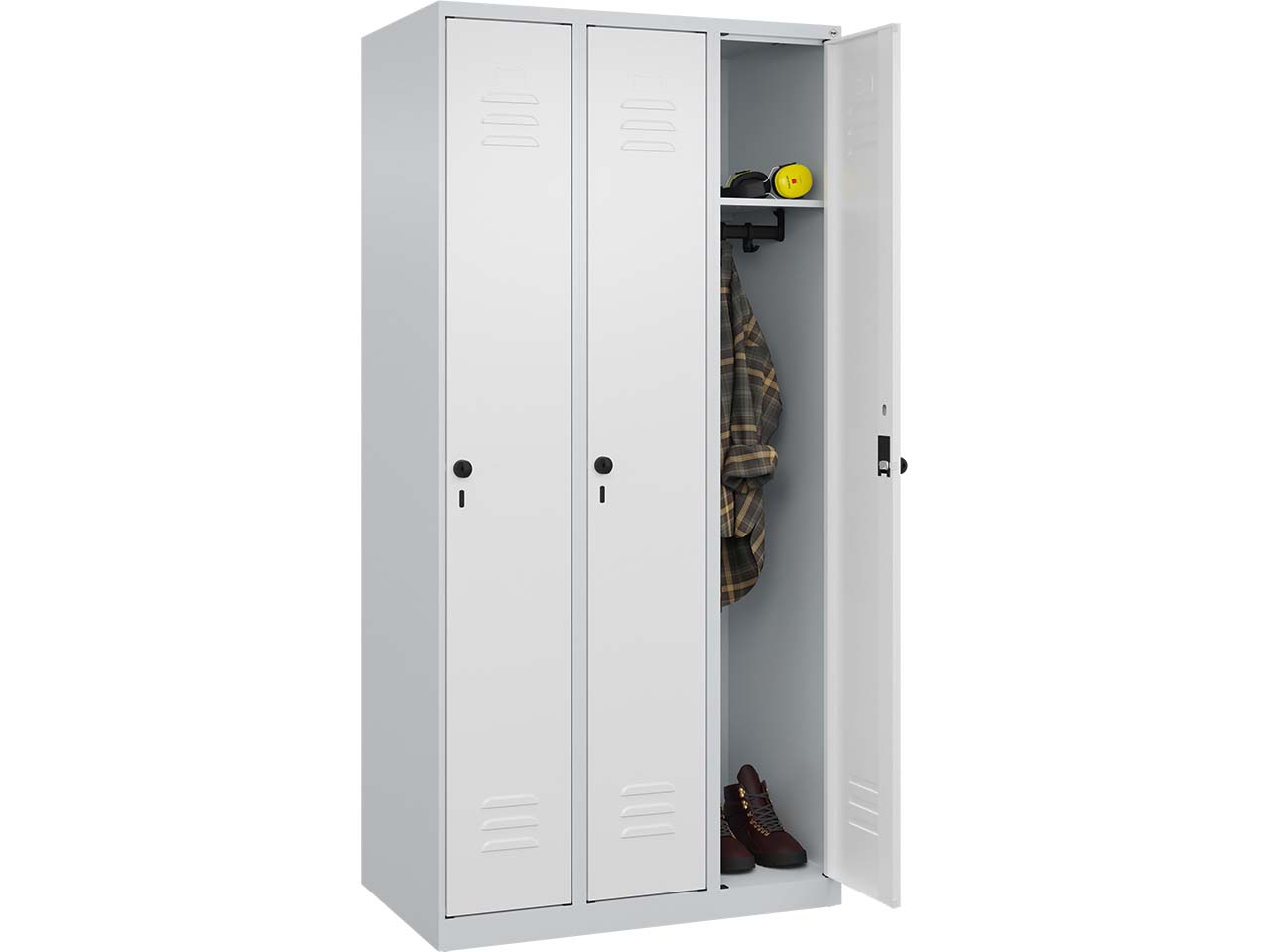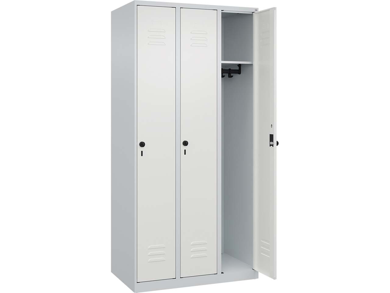 - Klassischer Spind aus Stahl mit 90 cm Breite und 3 Abteilen