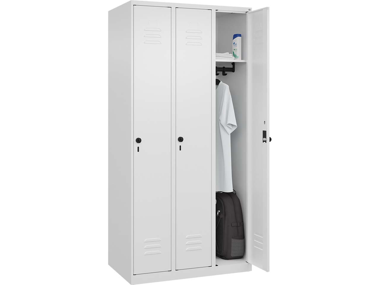 - Klassischer Spind aus Stahl mit 90 cm Breite und 3 Abteilen