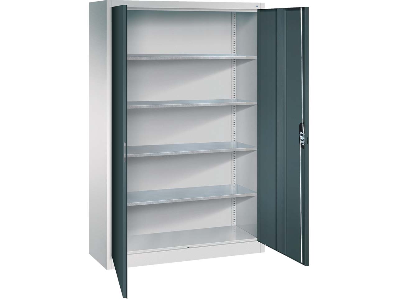 - Flexibel einsetzbarer Flügeltürenschrank aus stabilem Stahl