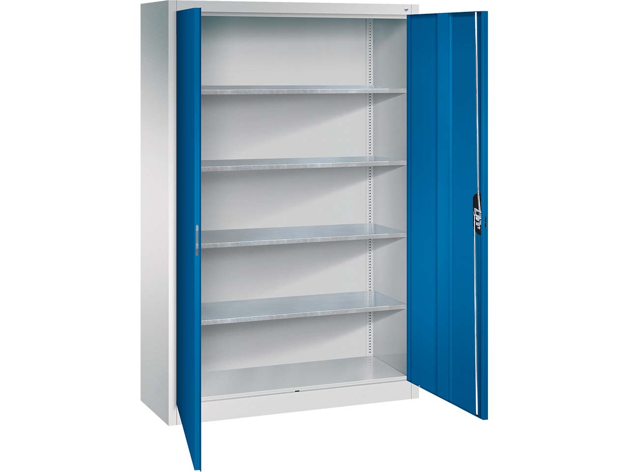 - Flexibel einsetzbarer Flügeltürenschrank aus stabilem Stahl
