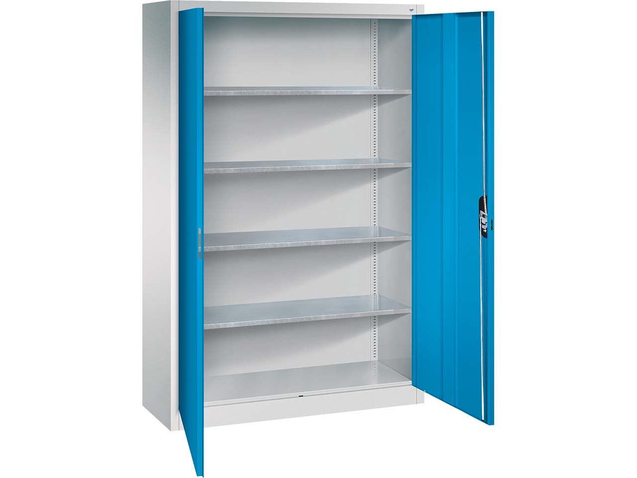 - Flexibel einsetzbarer Flügeltürenschrank aus stabilem Stahl