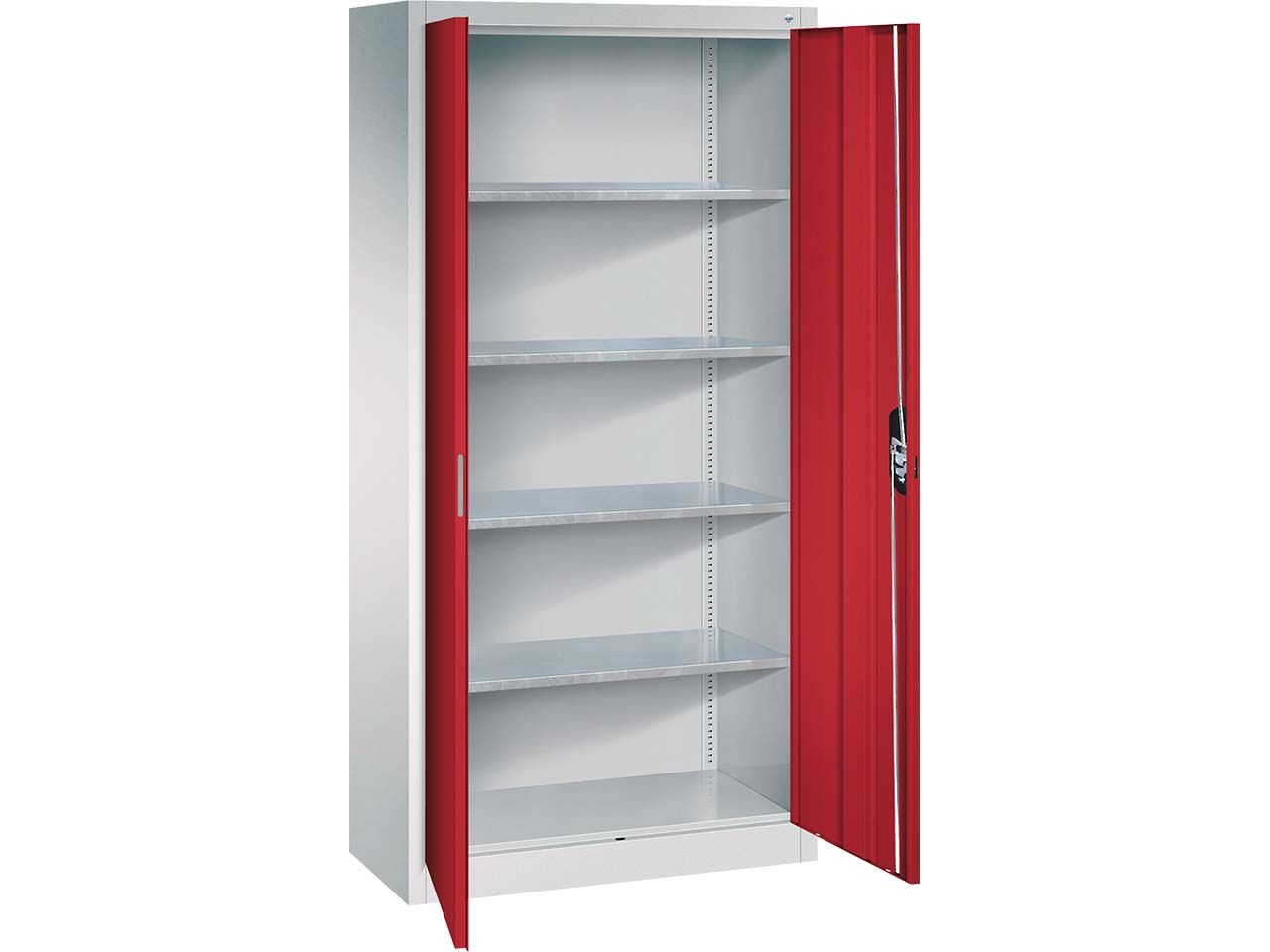 - Flexibel einsetzbarer Flügeltürenschrank aus stabilem Stahl
