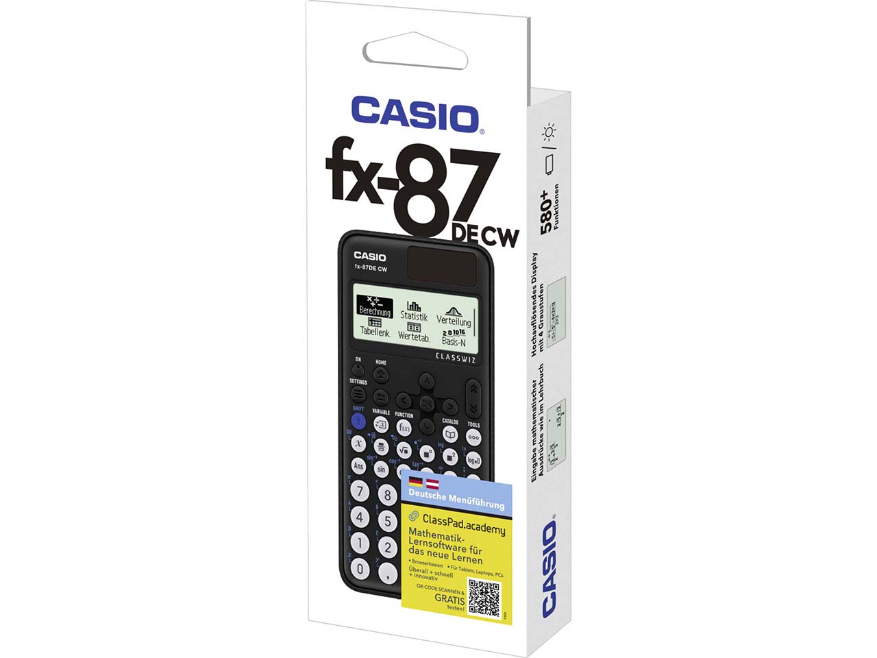 Der solarbetriebene wissenschaftliche Standardrechner von Casio ist einfach zu bedienen und punktet mit seinen zahlreichen, innovativen Funktionen wie Mathe Box und QR-Code-Funktion. Es werden kaum Abkürzungen und Tastenkombination auf dem Rechner benutzt und mathematische Ausdrücke wie Wurzeln, Brüche oder Logarithmen werden in natürlicher Schreibweise gezeigt. Die Mathe Box ermöglicht die Simulation von Würfel- und Münzwurfversuchen. Der Casio Taschenrechner ist mit einer QR-Code-Funktion ausgestattet, wodurch sich Ergebnisse auf Smartphone oder Tablet visualisieren lassen. Der technisch-wissenschaftliche Rechner hat ein Hardcase. Gewicht 95 g.