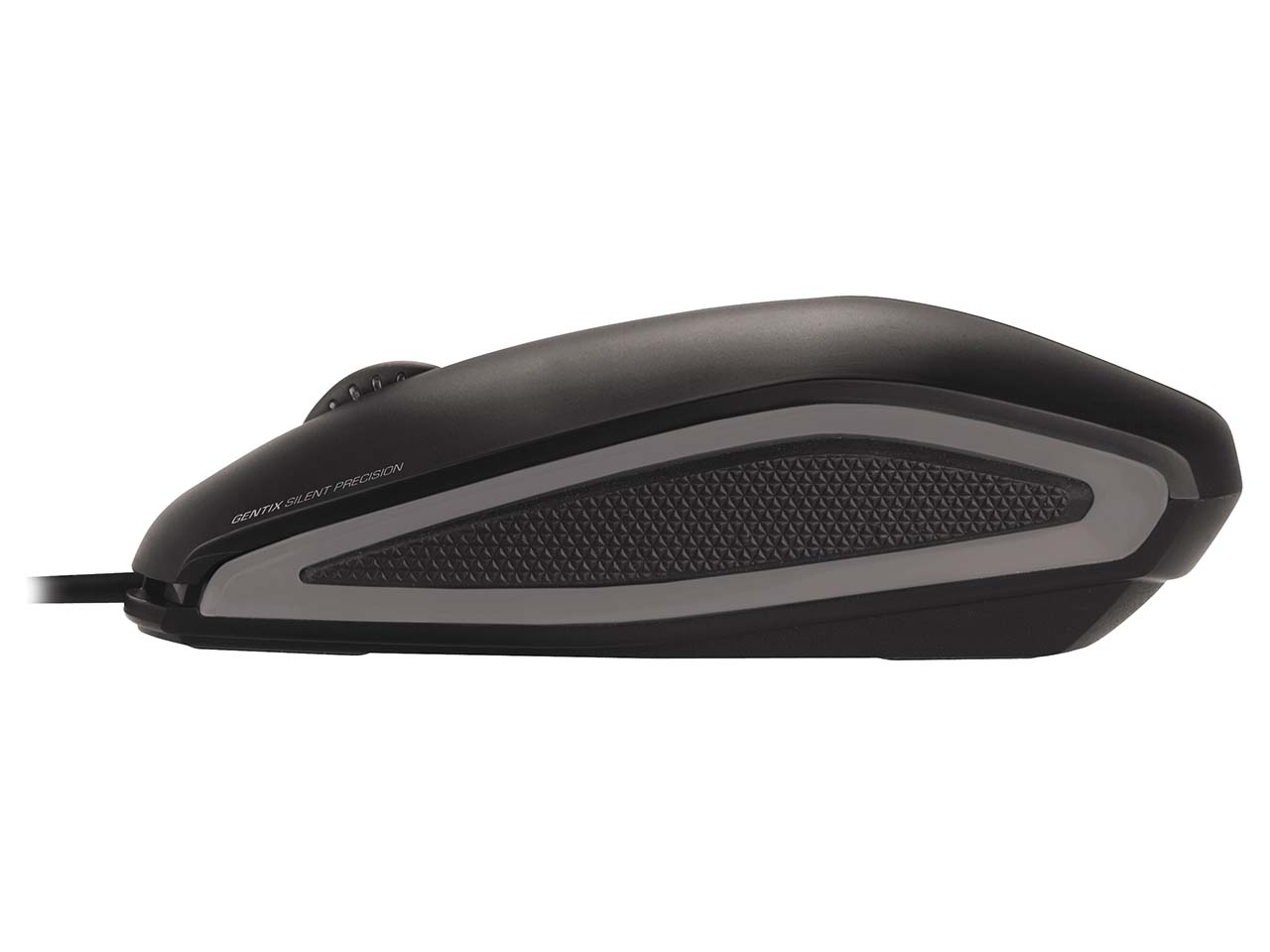 Die "GENTIX Silent" von Cherry ist eine ergonomisch designte optische Maus für ruhige Arbeitsumgebungen. Durch die speziellen Schalter wird das Klickgeräusch unterbunden, was das Lautstärkeniveau in Großraumbüros positiv beeinflusst. Die exzellente Ergonomie eignet sich für große und kleine Hände, Rechts- und Linkshänder. Die abriebfeste Oberflächenveredelung sorgt für ein angenehmes Handgefühl. Der optische Sender mit 1.000 dpi Auflösung stellt die präzise Umsetzung der Mausbewegung sicher. Extra lange USB-Kabel mit 1,8 m.