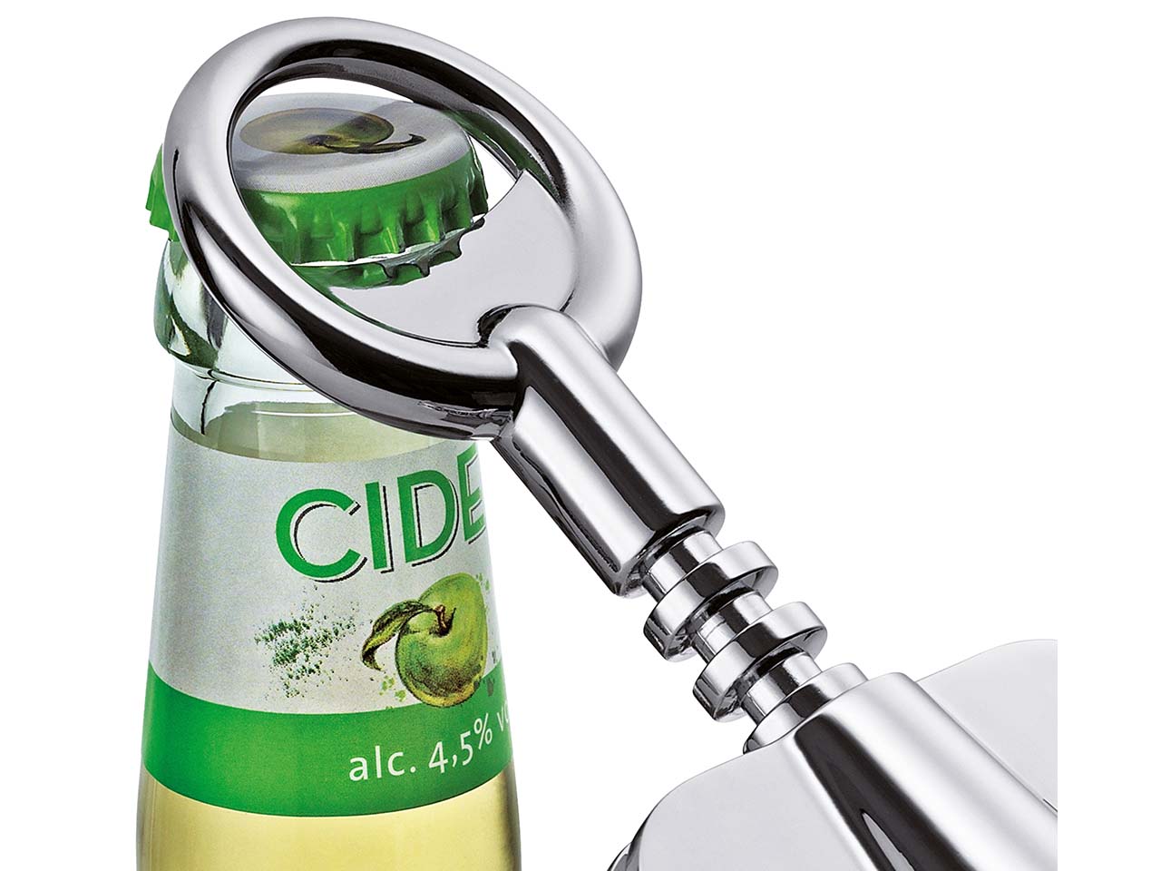 Der Flügelkorkenzieher mit Kapselheber schafft es, edles Design und durchdachte Funktionalität zu vereinen. Der Alltagshelfer entkorkt Weinflaschen sicher und mühelos. Mit dem integrierten Kapselheber lassen sich auch Bierflaschen oder andere Getränke mit Kronkorken öffnen.