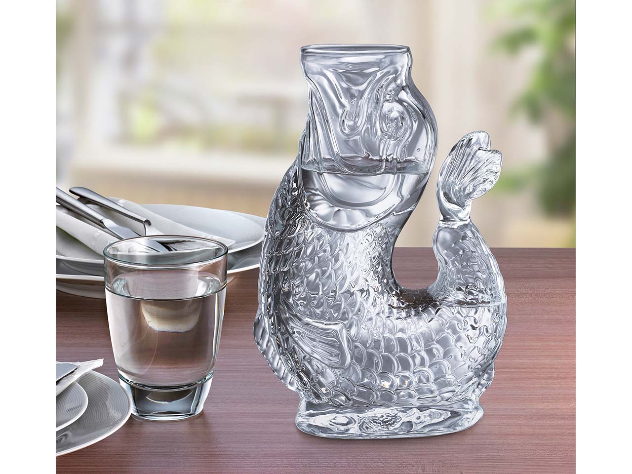 Wasser ist seine Welt – NEMO ist von der Unterwasserwelt inspiriert und wo er auch auftaucht, zieht er alle Blicke auf sich. Die handgefertigte Karaffe aus hochwertigem Borosilikatglas ist ein echter Hingucker, der jedes Mittag- oder Abendessen in ein Event verwandelt. Dank breitem Hals ist die Wasserkaraffe ganz einfach mit dem Lieblingsgetränk befüllt. Selbst für Eiswürfel oder Früchte ist Platz. Der Fischschwanz dient als Griff und sorgt für sicheren Stand auf dem Tisch. Beim Ausgießen macht die Karaffe fröhliche Gluckgeräusche – ein Spaß für die ganze Familie!