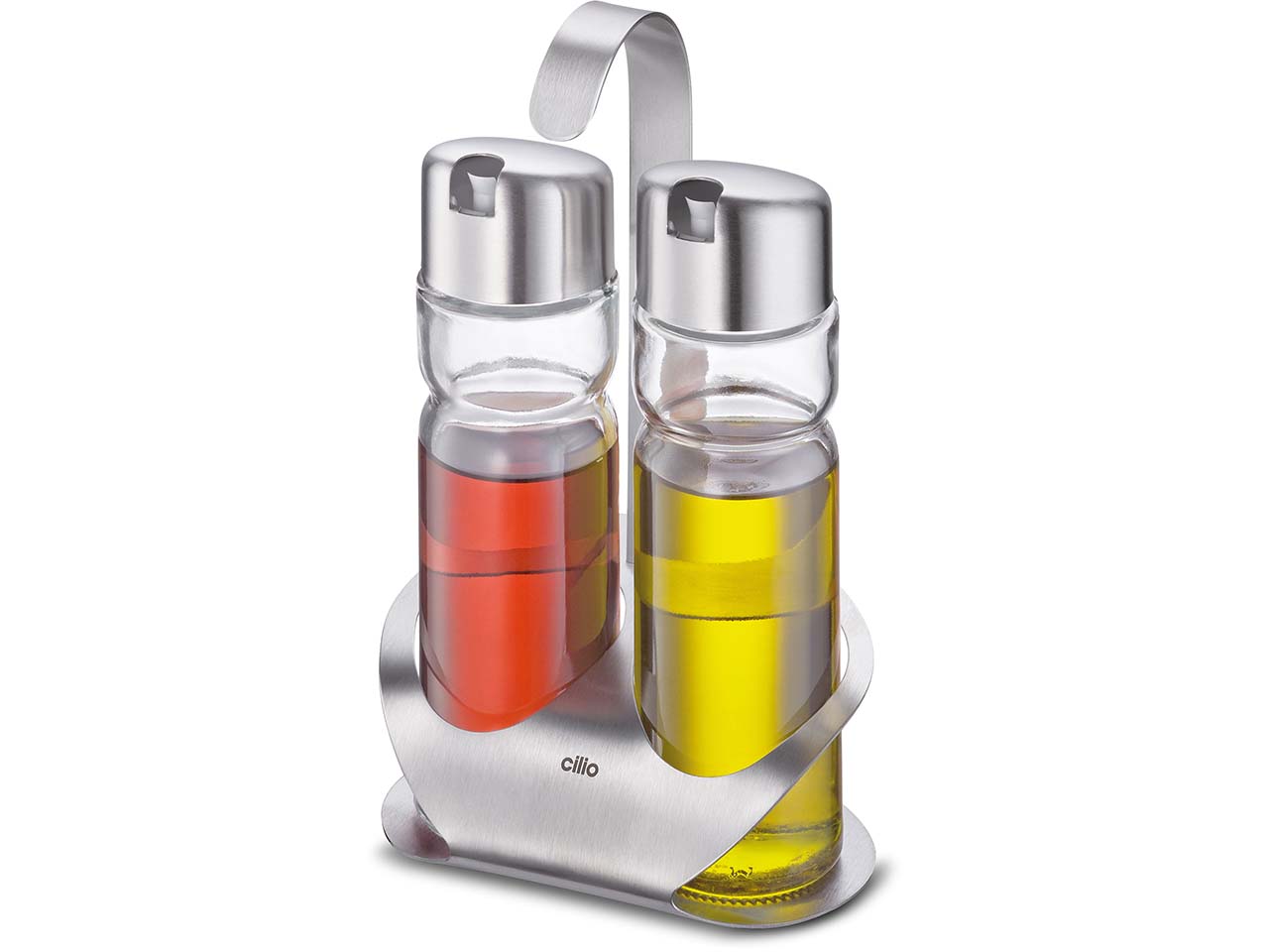 Dieses Menage-Set sorgt für einen Hauch von mediterranem Flair auf dem Tisch! Die dekorativen Spender vereinen Funktionalität und stilvolles Design. Sie eignen sich hervorragend, um Öl und Essig griffbereit auf dem Tisch zu haben. Die schlanken Spender ermöglichen ein präzises, tropffreies Dosieren. Dank praktischem Tragegriff ist ein einfacher Transport möglich. Damit eignet sich das Set auch für Gartenpartys oder Grillabende.