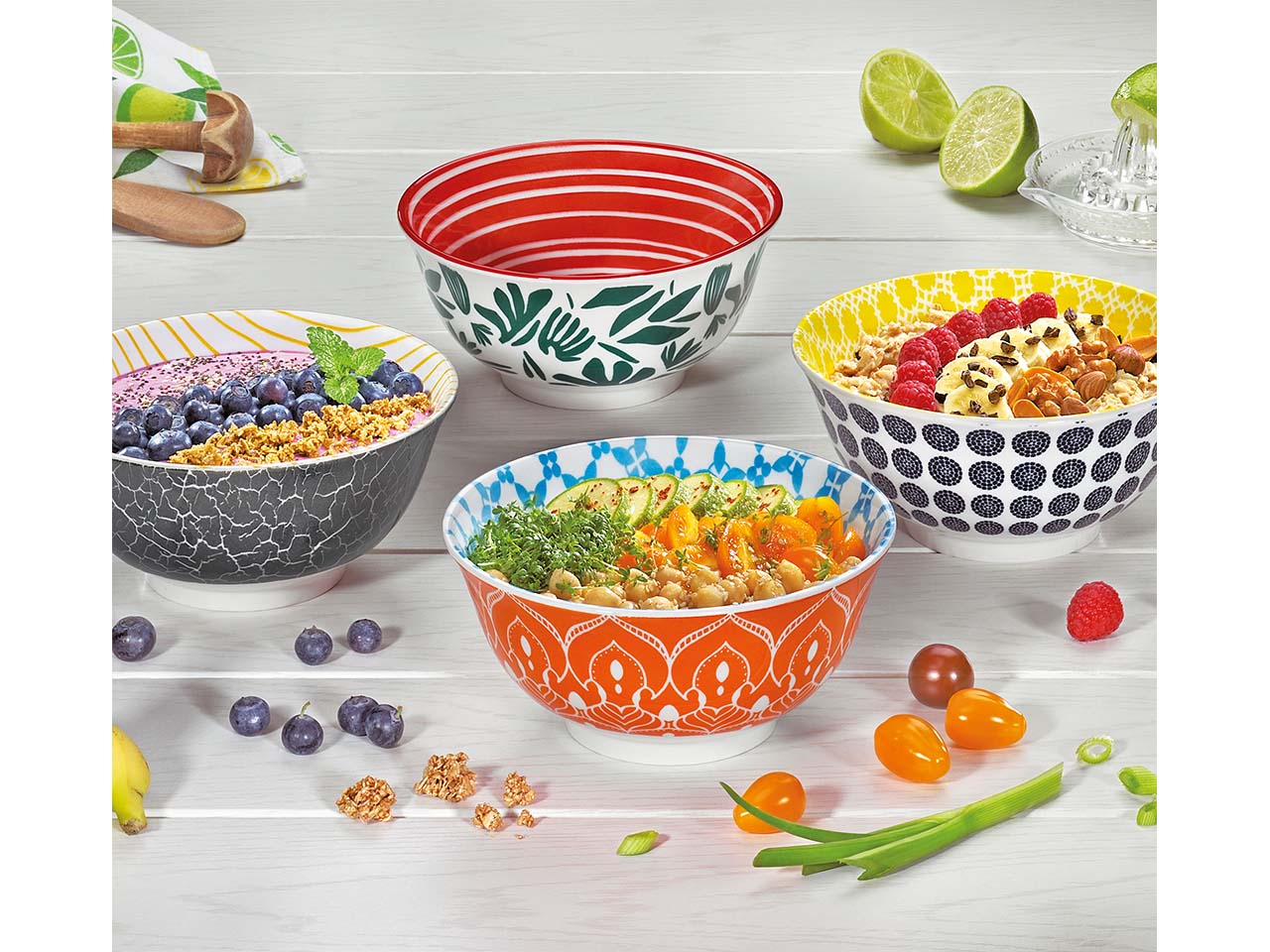 - Farbenfrohe Schüssel aus gebranntem Porzellan