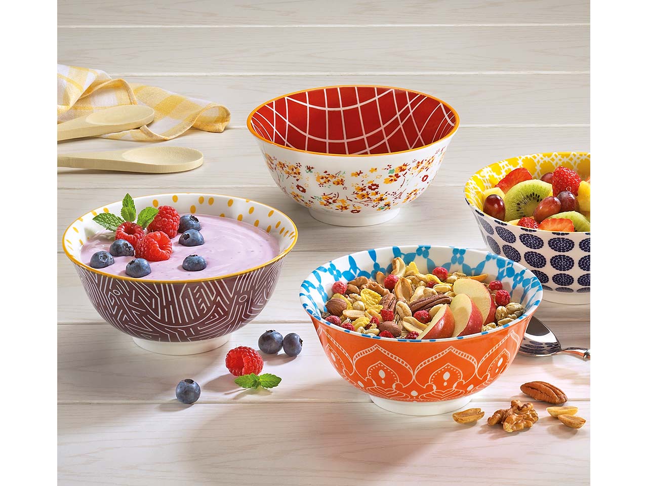 - Farbenfrohe Schüssel aus gebranntem Porzellan