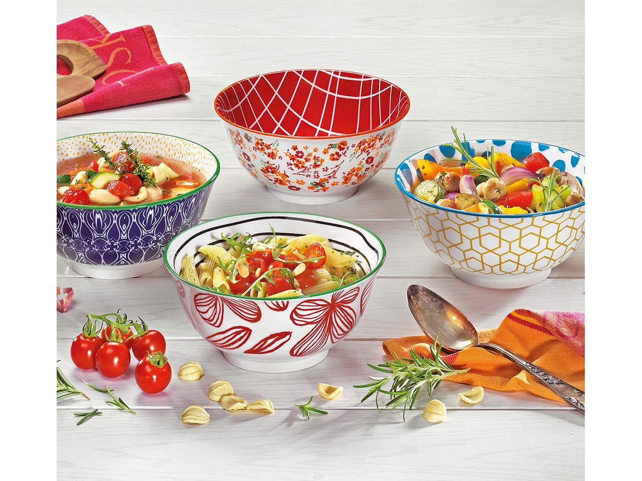 - Farbenfrohe Schüssel aus gebranntem Porzellan