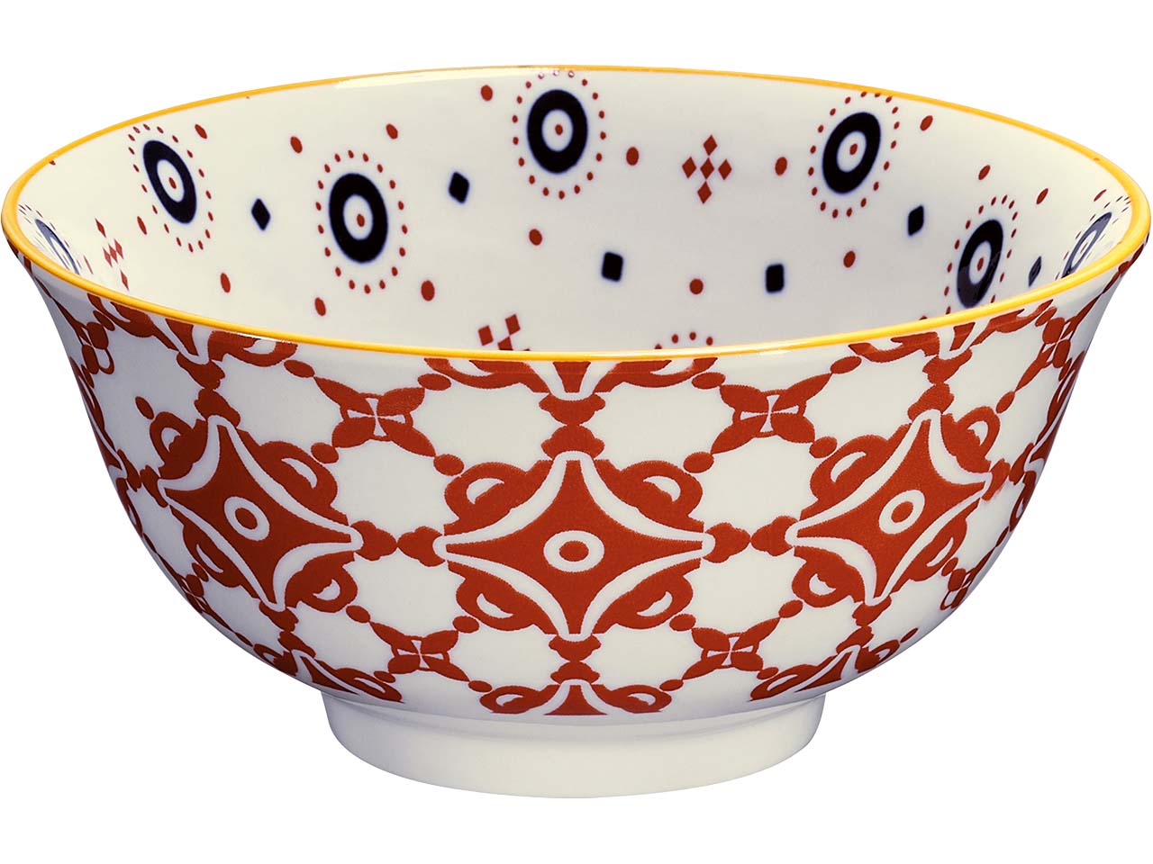 In dieser wunderschönen Schüssel aus gebranntem Porzellan finden allerlei Köstlichkeiten Platz. Sie eignet sich für das Müsli zum Frühstück genauso gut wie für die Snacks am Schreibtisch. Die Bowl ist einfach ein Alleskönner. Deswegen kann sie auch in die Mikrowelle und die Spülmaschine. Das Kachelmuster ist farbenfroh und setzt Akzente. Mit einem Fassungsvermögen von 500 ml.