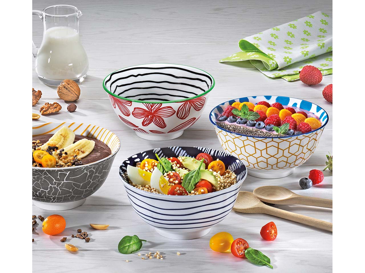 - Farbenfrohe Schüssel aus gebranntem Porzellan