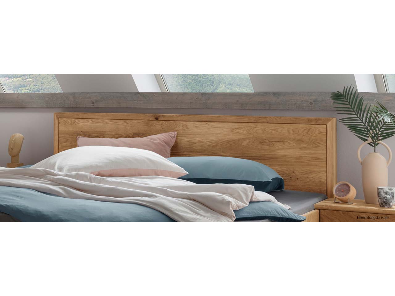 Als Meisterwerk der Geradlinigkeit präsentiert sich dieses wunderschöne Bettgestell mit natürlichem, harmonischem Charme. Massives, FSC-zertifiziertes Eichenholz mit geölter und dadurch offenporiger Holzoberfläche bildet die Basis für traumhaft guten Schlaf. Das hohe Fußteil trägt zur ansprechenden Optik bei und das Holzkopfteil ist ideal, um sich im Bett aufzusetzen, zu lesen oder zu entspannen. Vier stabile Füße tragen die langlebige, strapazierfähige Konstruktion. Unter dem Bett ist viel Stauraum für z.B. eine Unterbettbox. Ein passender Nachttisch ist separat erhältlich. Das Massivholzbett ist in verschiedenen Größen verfügar.