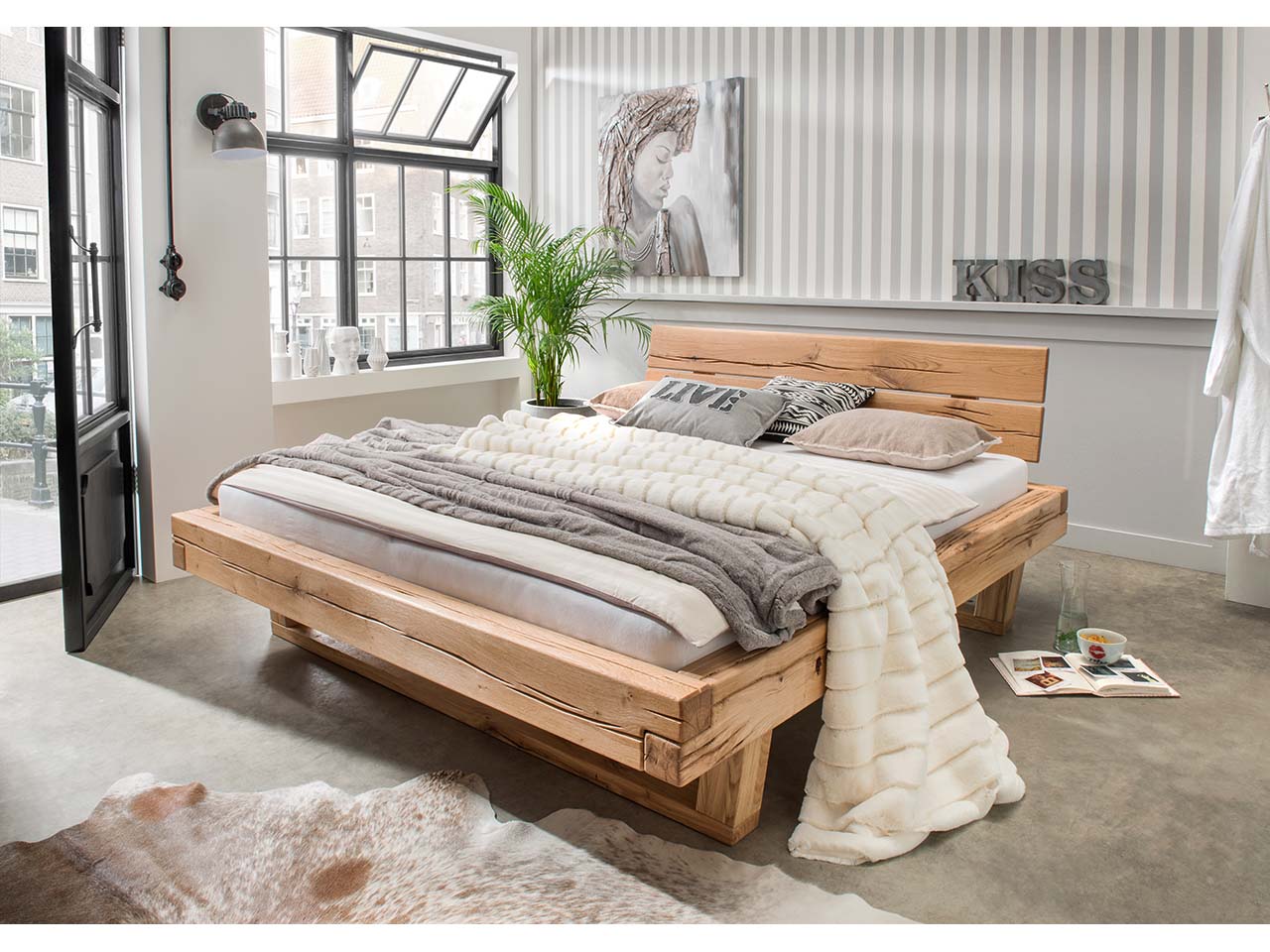 Rustikale Natürlichkeit und einzigartiges Design kombinieren sich zu einem Bettgestell, das zum Träumen einlädt. Doch nicht nur Naturliebhaber kommen beim Anblick von "Unika" ins Schwärmen. Als Balkenbett setzt die Schlafstätte ganze besondere Akzente im Schlafzimmer. Bei dieser Art von Bett ist das Gestell aus einzelnen Holzbalken gefertigt, die mit stabilen Schraubverbindungen an den ineinandergreifenden Ecken vereint wurden. Es entsteht so eine besonders robuste und langlebige Qualität. Diese spiegelt sich auch in der Verarbeitung des Kopfteils und in den Füßen wieder. Durch Naturmerkmale wie Wuchsrisse und Unebenheiten im Holz wird die Ursprünglichkeit unterstrichen und jedes Bett zum Unikat. Die Holzoberfläche ist nur mit Öl behandelt, sodass die ausdrucksstarke Maserung exzellent zur Geltung kommt. Das Bett ist aus massiver, FSC-zertifizierter Wildeiche gefertigt.